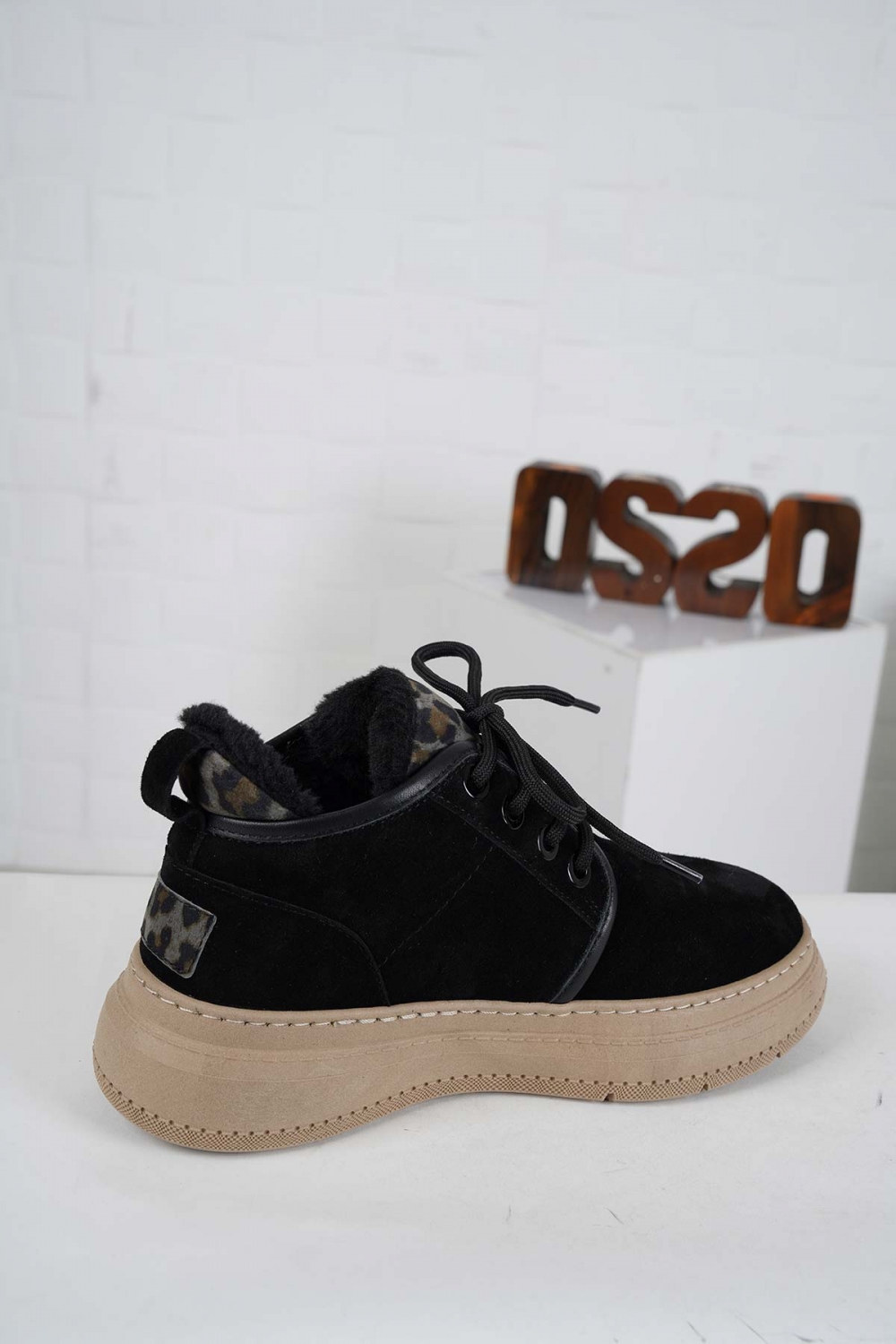 Hakiki Deri Kürklü Siyah Kadın Casual Bot 252189203