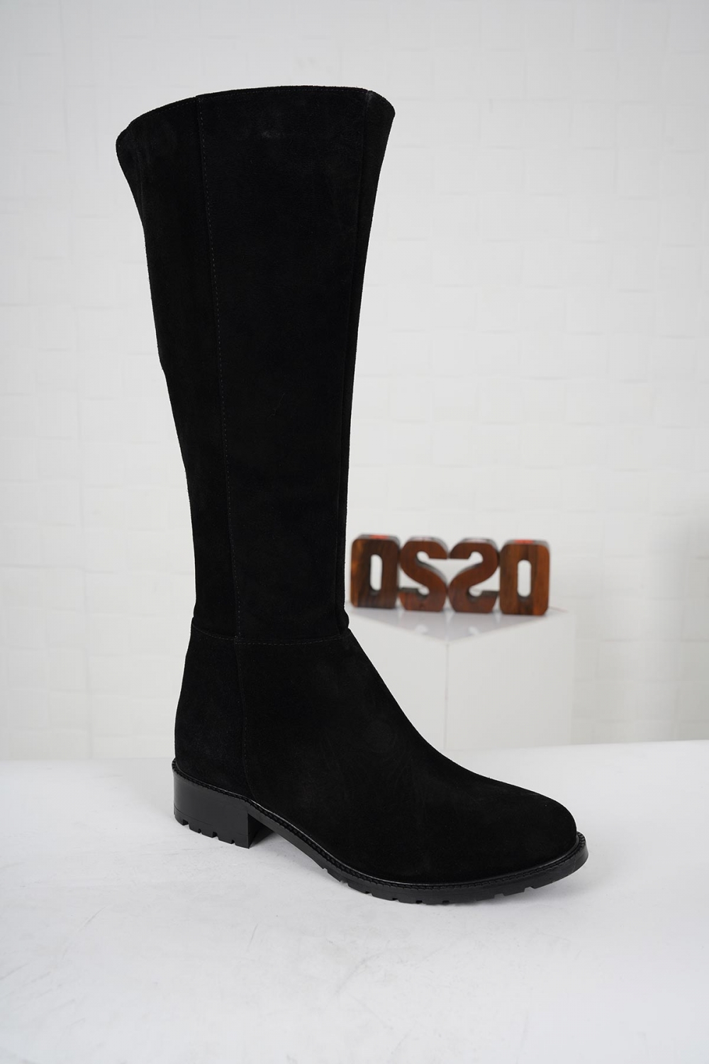 Hakiki Deri Siyah Süet Kadın Binici Çizme 202110319
