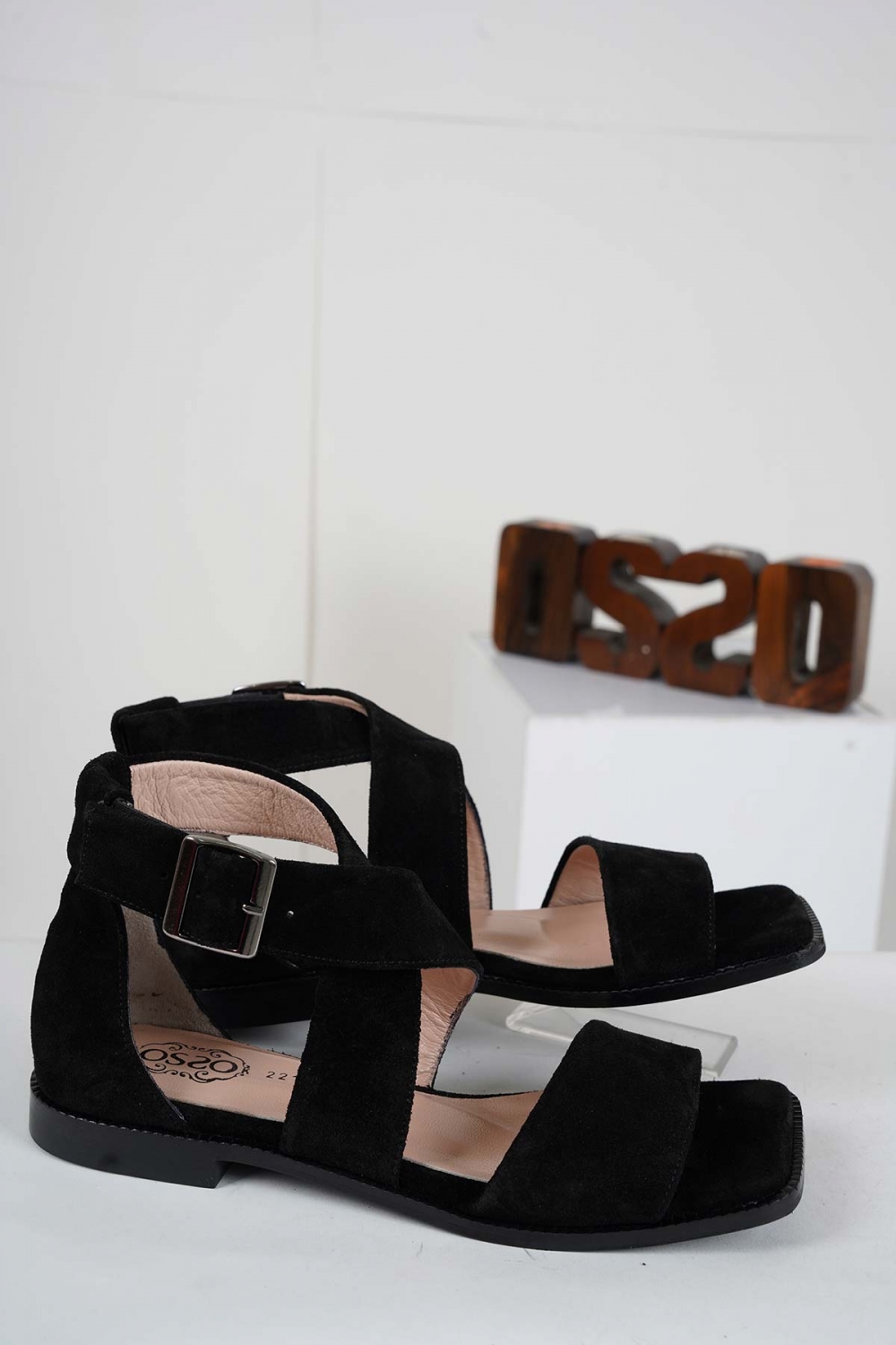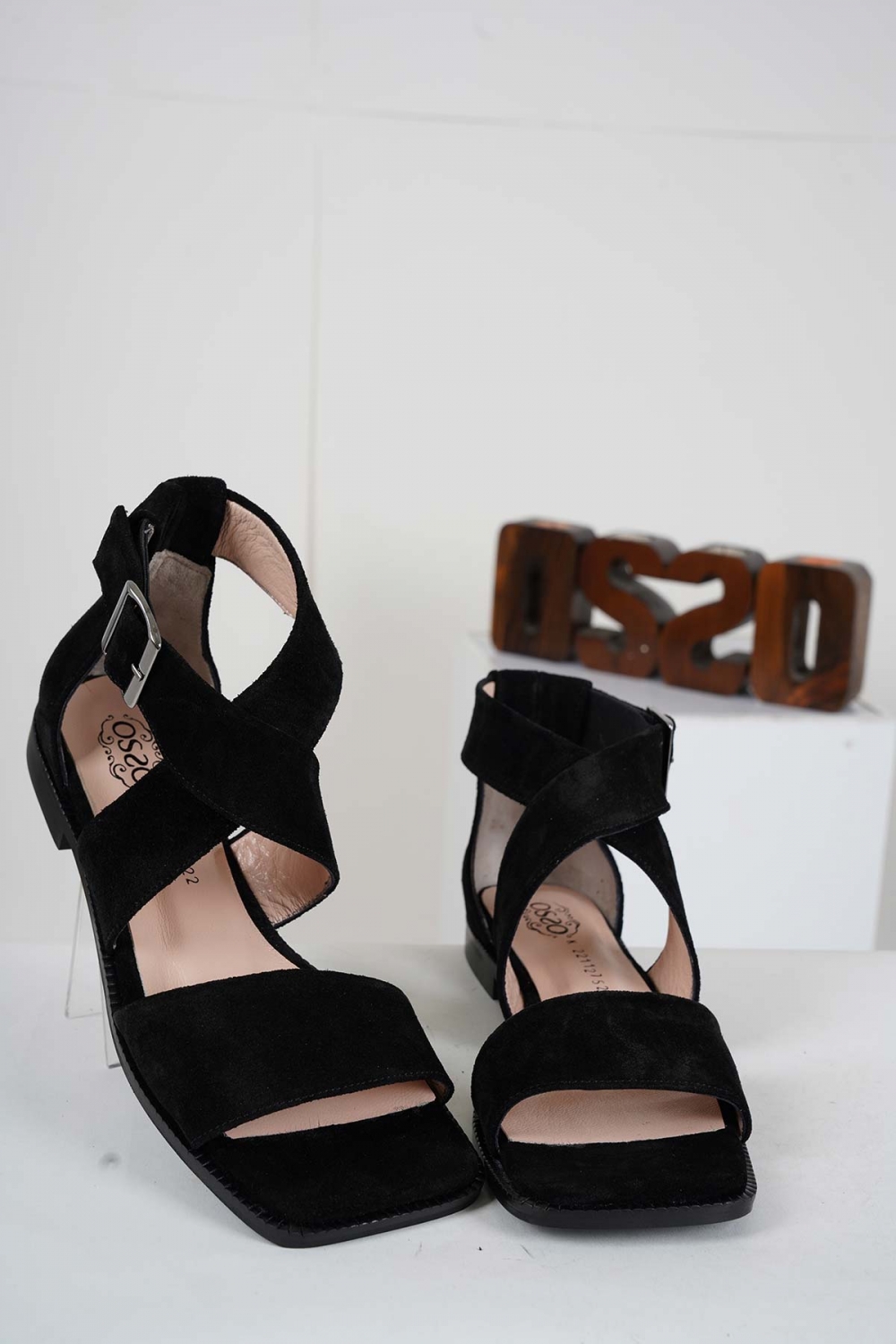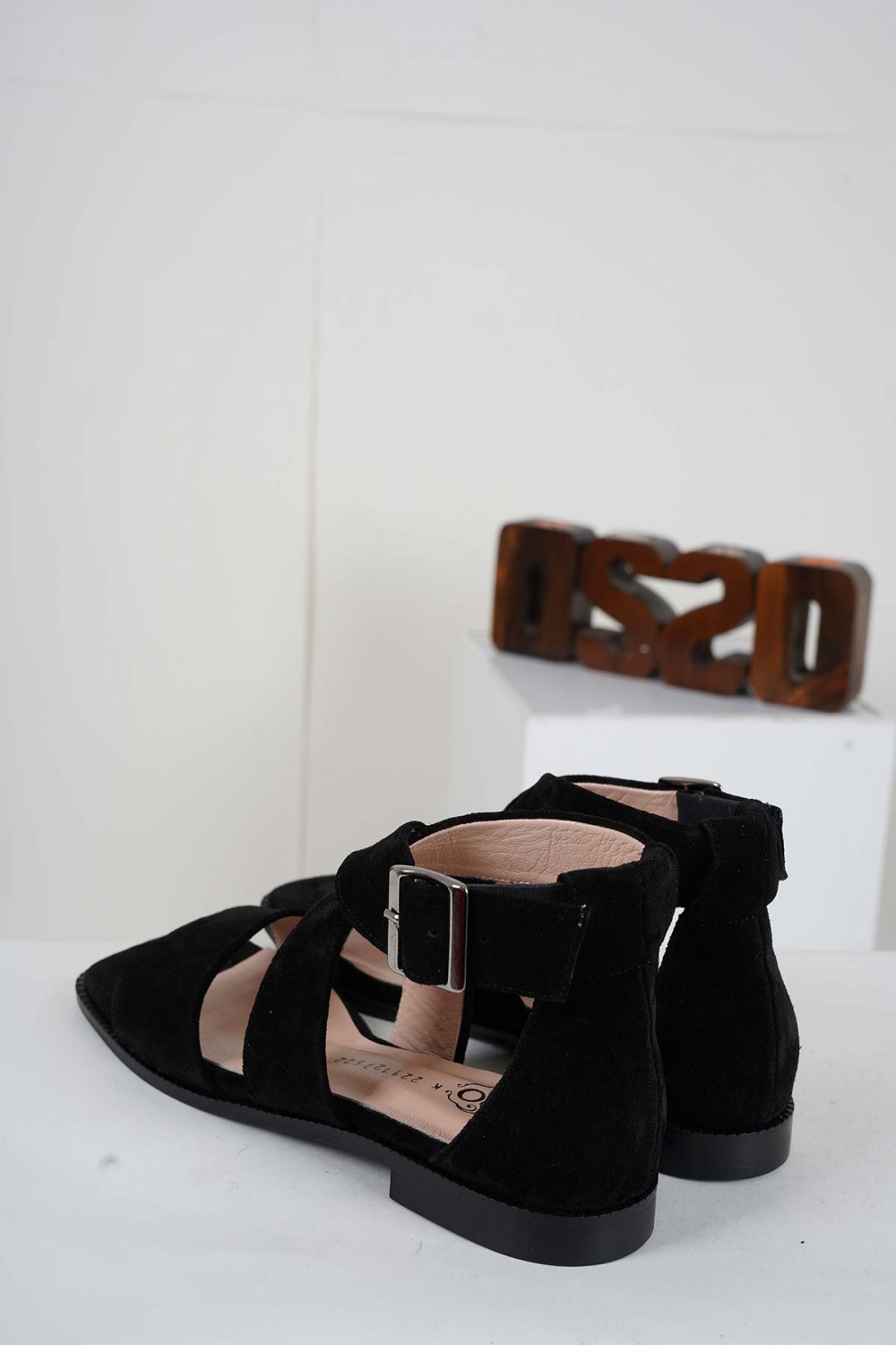 Hakiki Deri Siyah Süet Kadın Burun Kapalı Sandalet 221127522