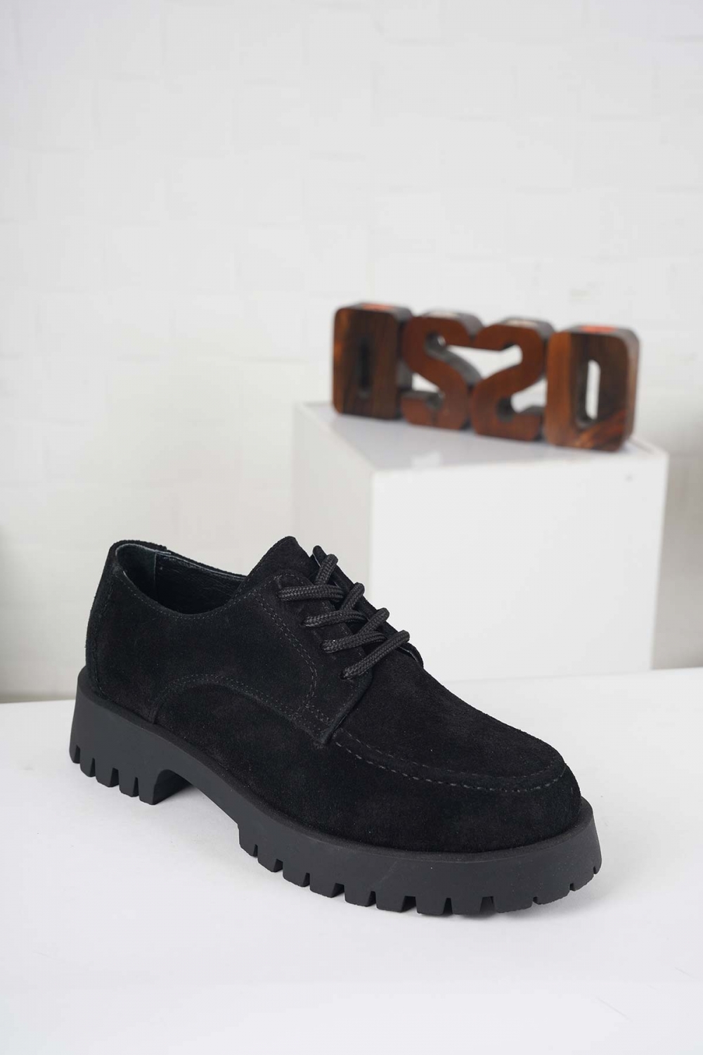 Hakiki Deri Siyah Süet Kadın Casual Ayakkabı 231108118