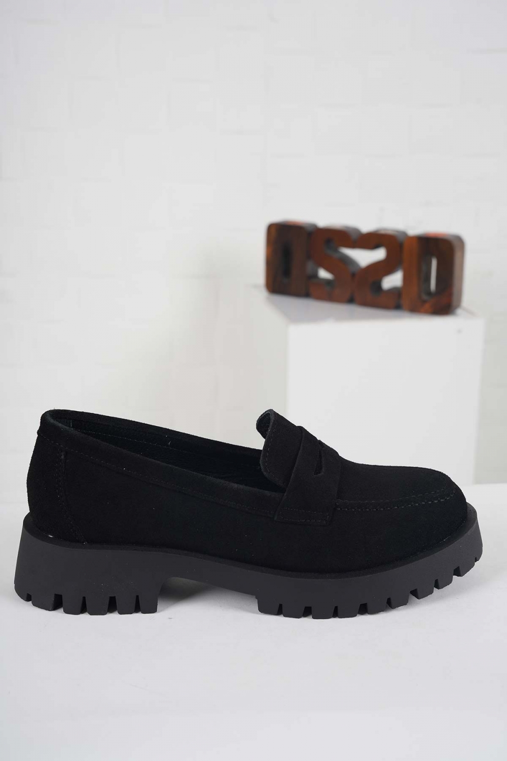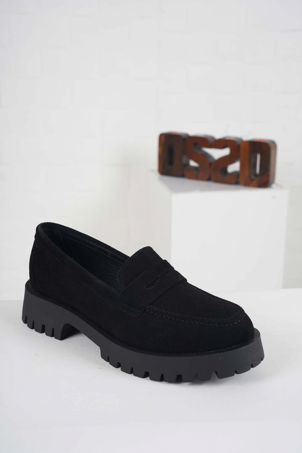 Hakiki Deri Siyah Süet Kadın Casual Ayakkabı 261108105
