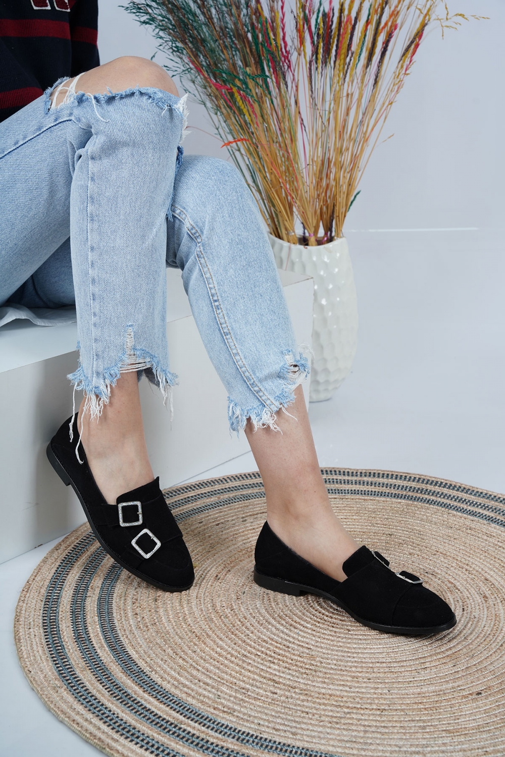 Hakiki Deri Siyah Süet Kadın Casual Ayakkabı 261108105