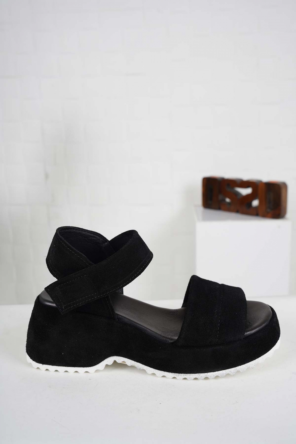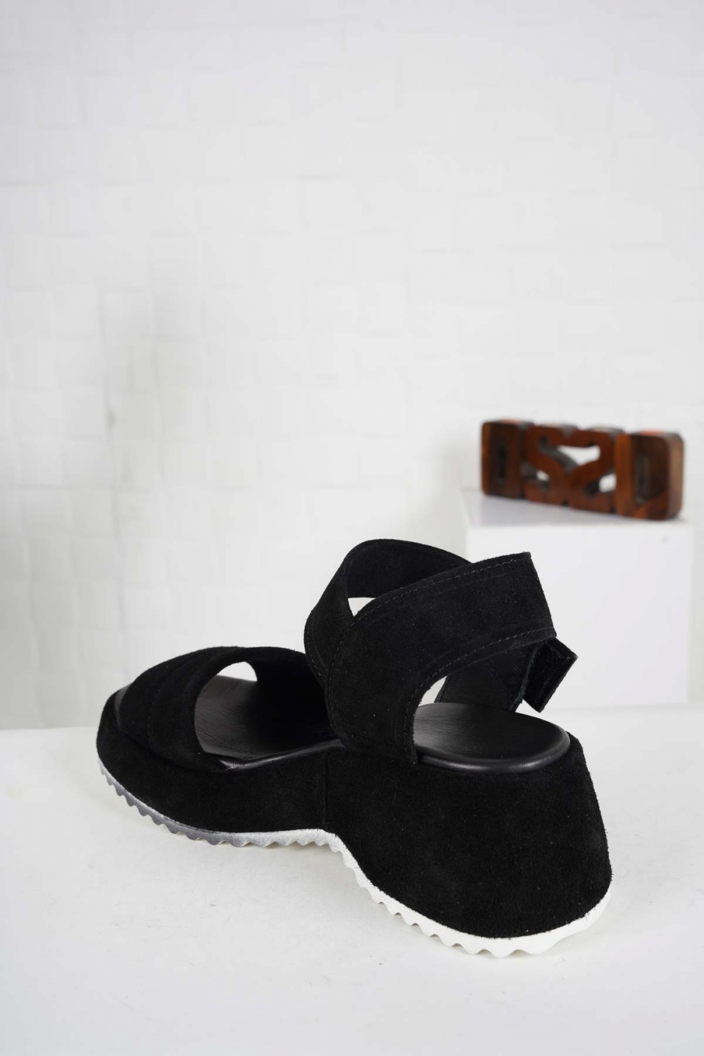 Hakiki Deri Siyah Süet Kadın Dolgu Topuk Sandalet 241135501