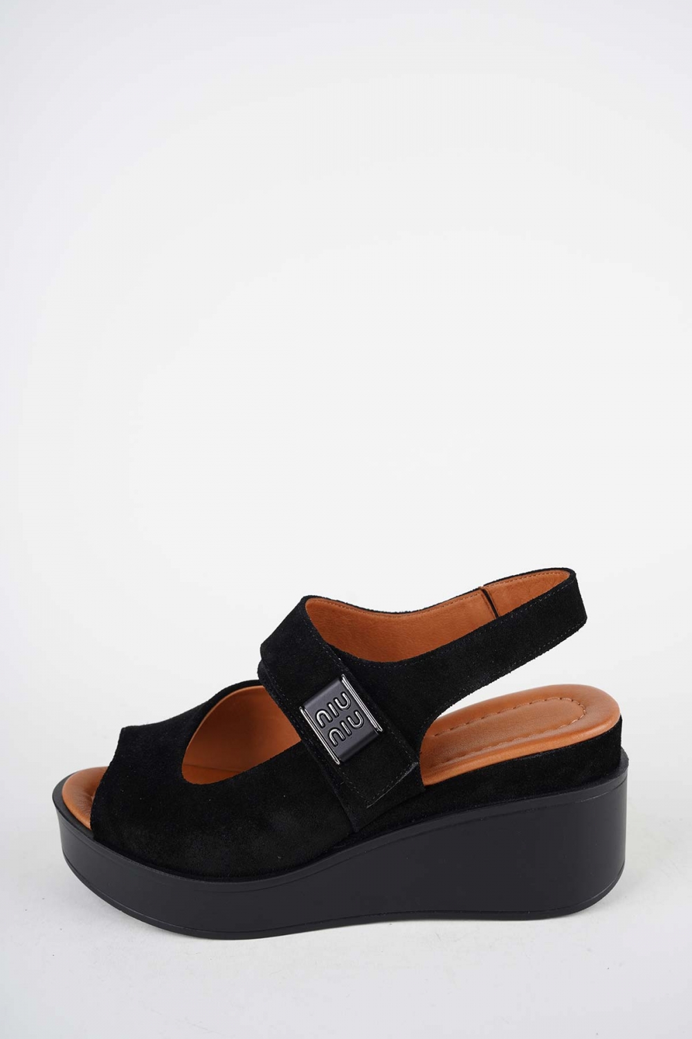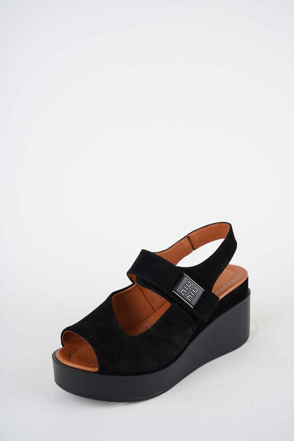 Hakiki Deri Siyah Süet Kadın Dolgu Topuklu Sandalet 261229514