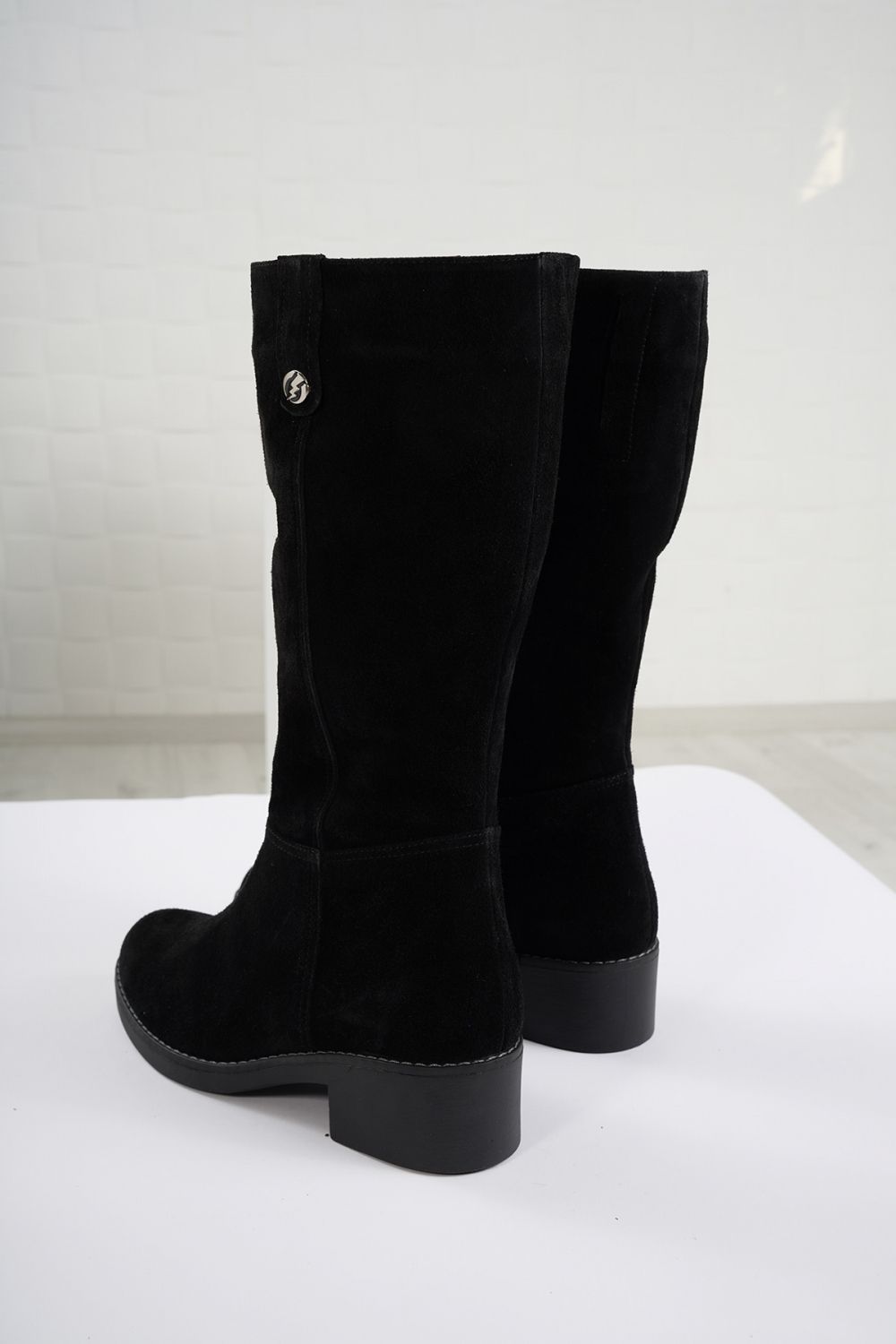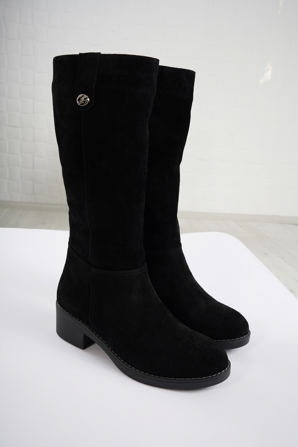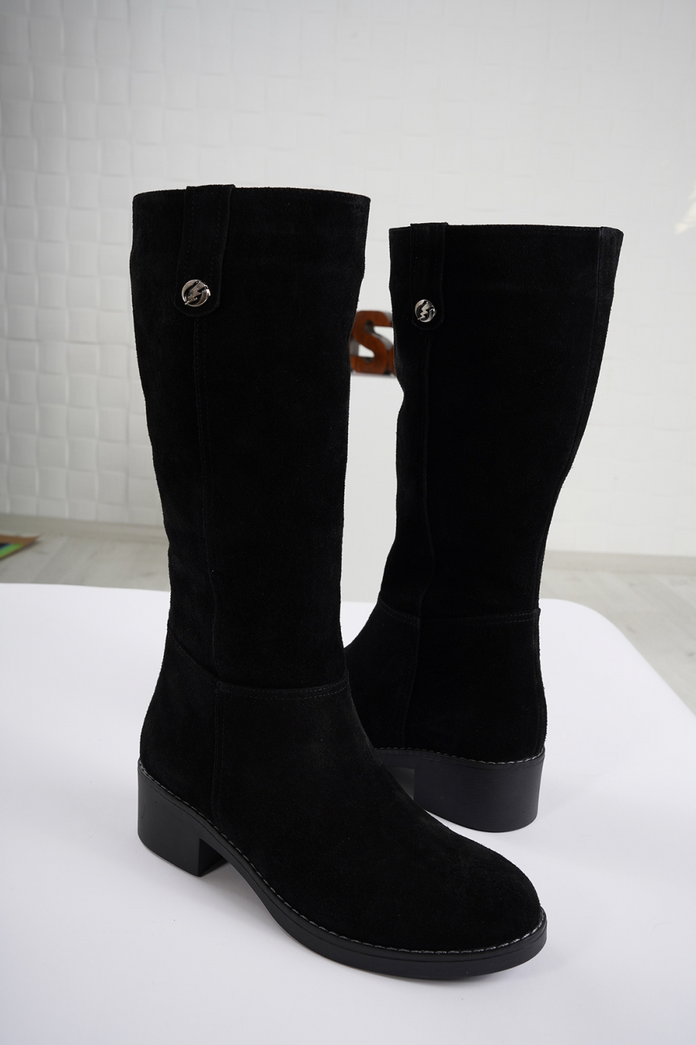 Hakiki Deri Siyah Süet Kadın Düz Çizme 212136306