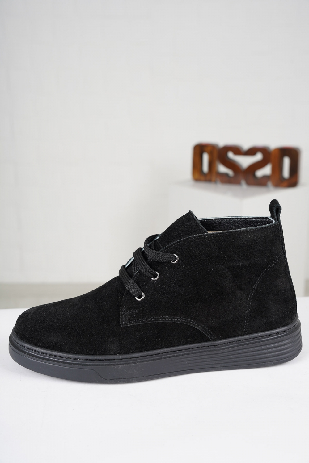 Hakiki Deri Siyah Süet Kadın Kısa Bot 222108201