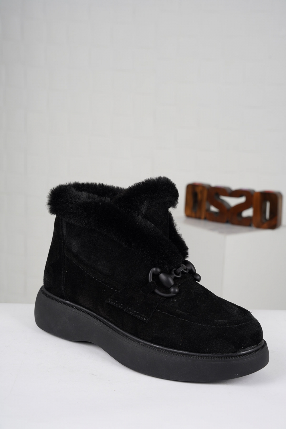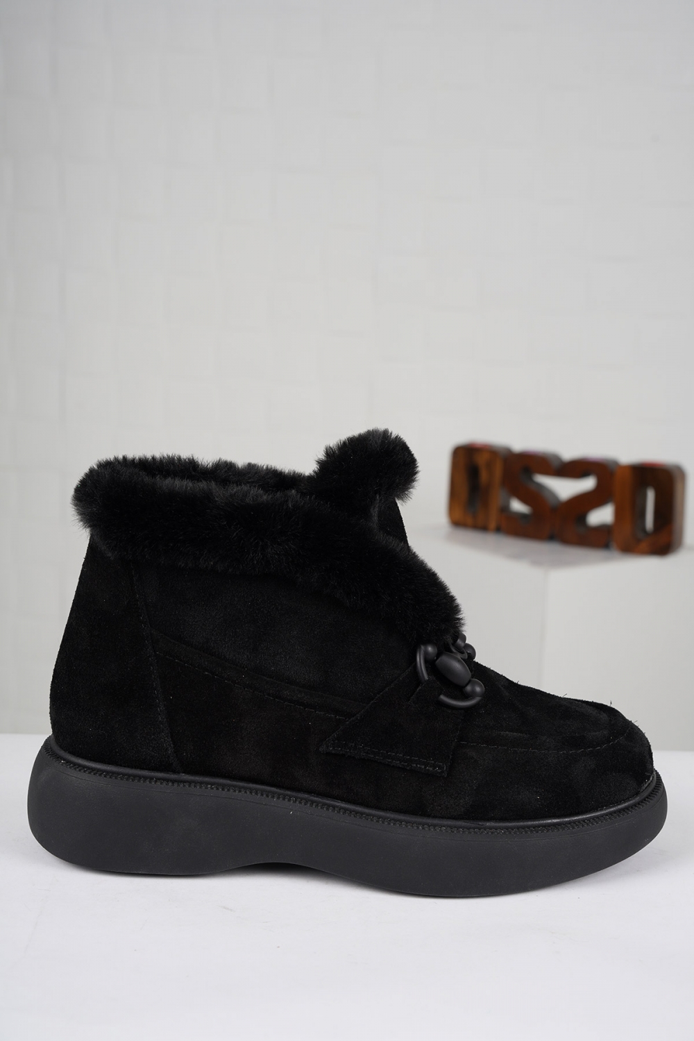 Hakiki Deri Kürklü Siyah Kadın Casual Bot 252189203