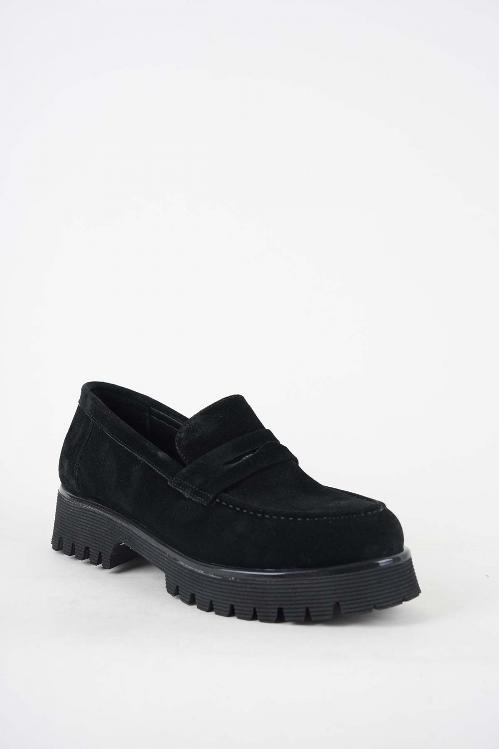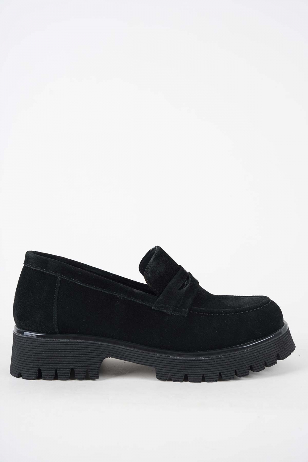 Hakiki Deri Siyah Süet Kadın Loafer Ayakkabı 252134103