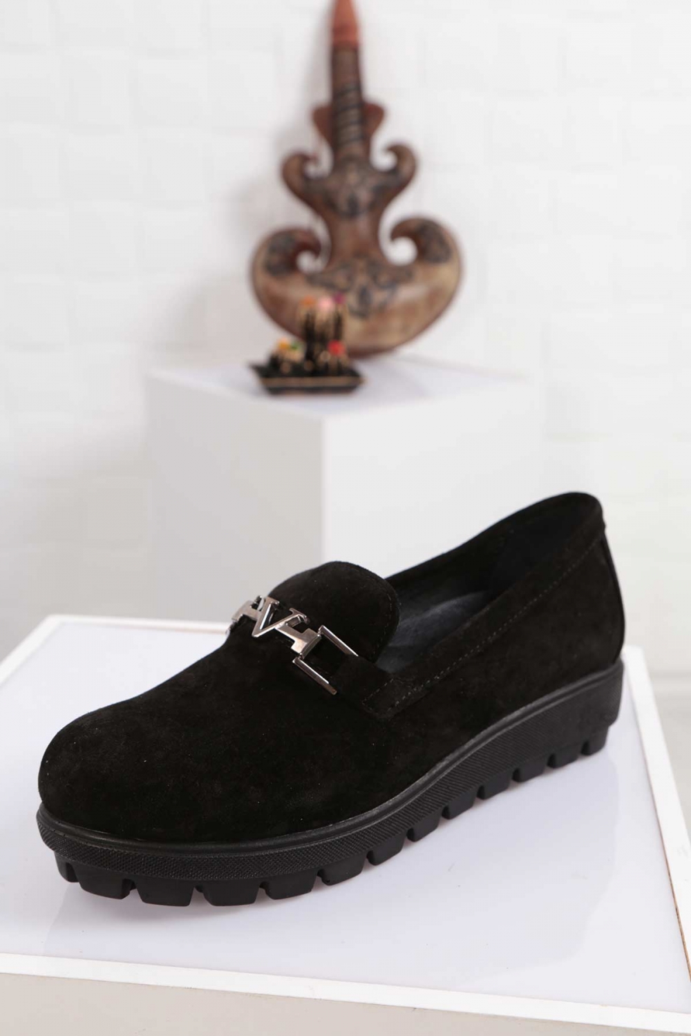 Hakiki Deri Siyah Süet Kadın Casual Ayakkabı 261108106