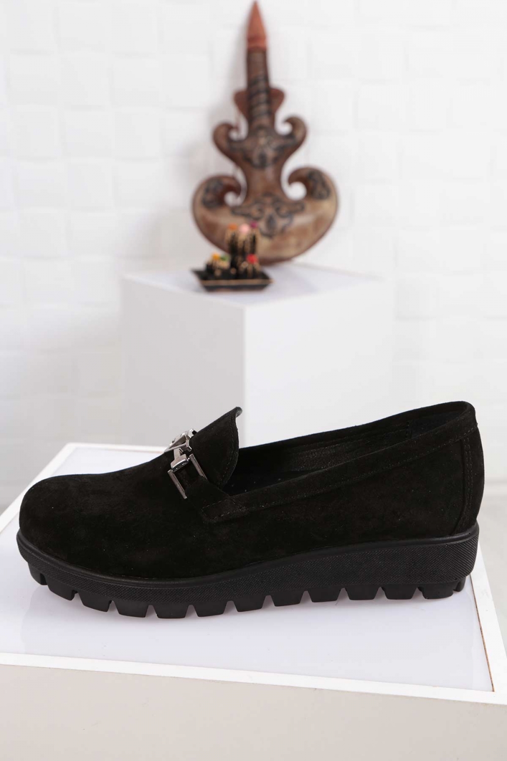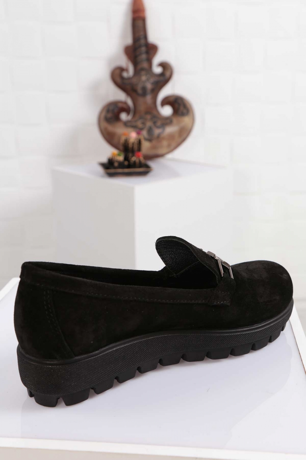 Hakiki Deri Siyah Süet Kadın Casual Ayakkabı 261108105
