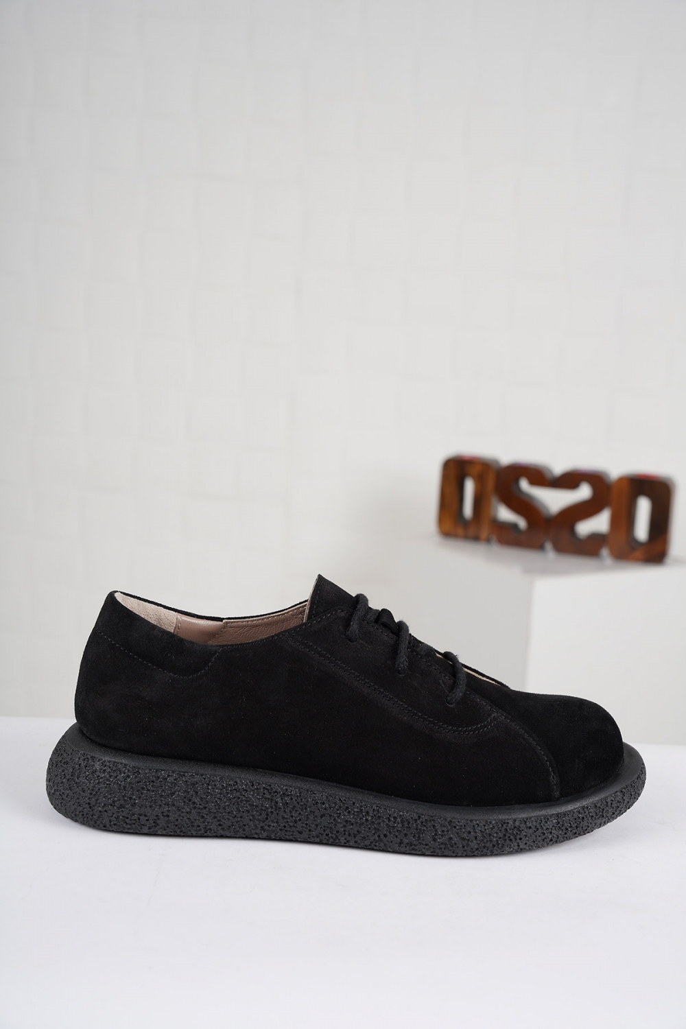 Hakiki Deri Siyah Süet Kadın Sneaker Ayakkabı 222135102