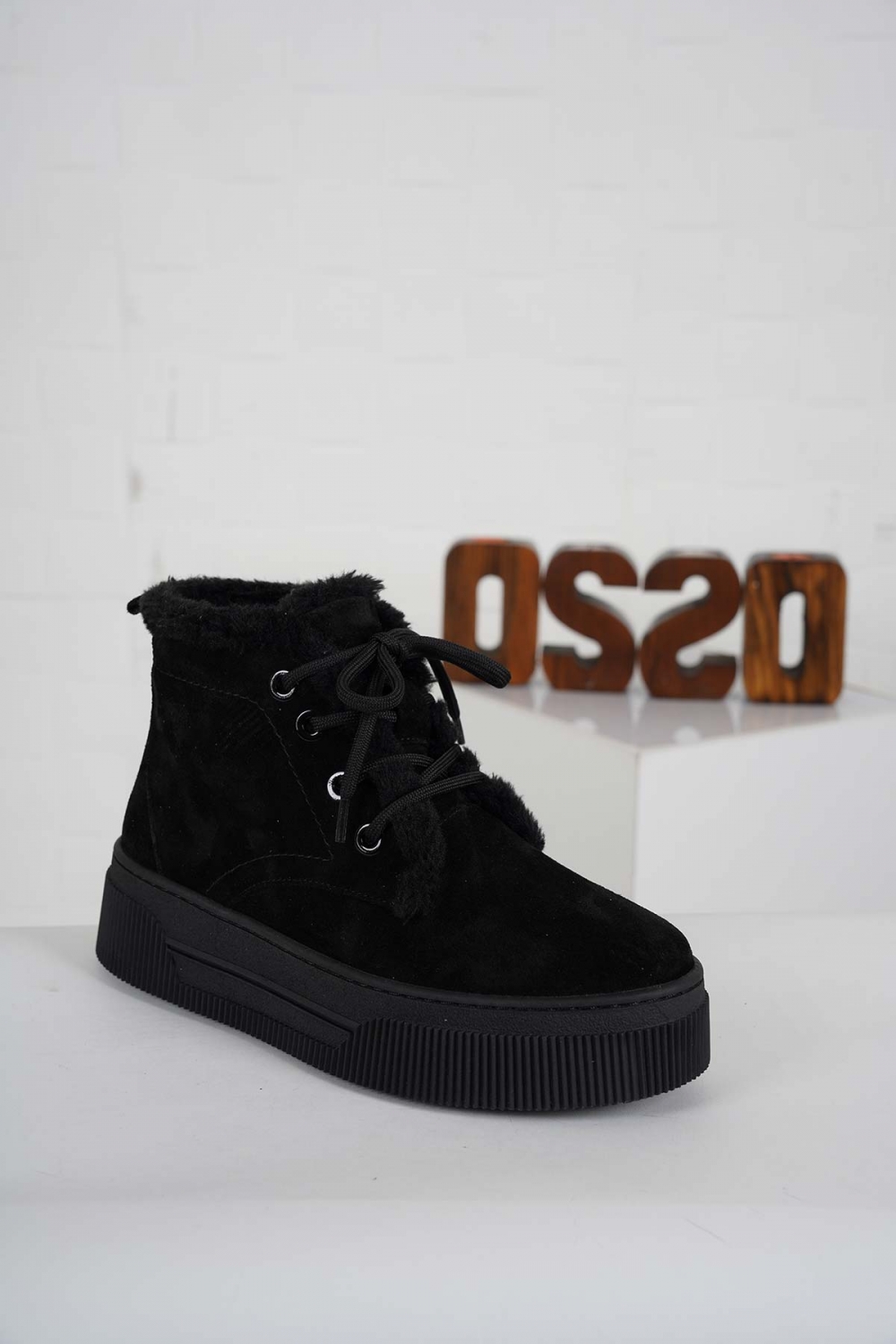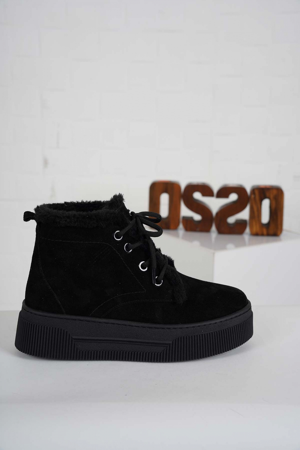 Hakiki Deri Siyah Süet Kadın Sneaker Bot 232225203