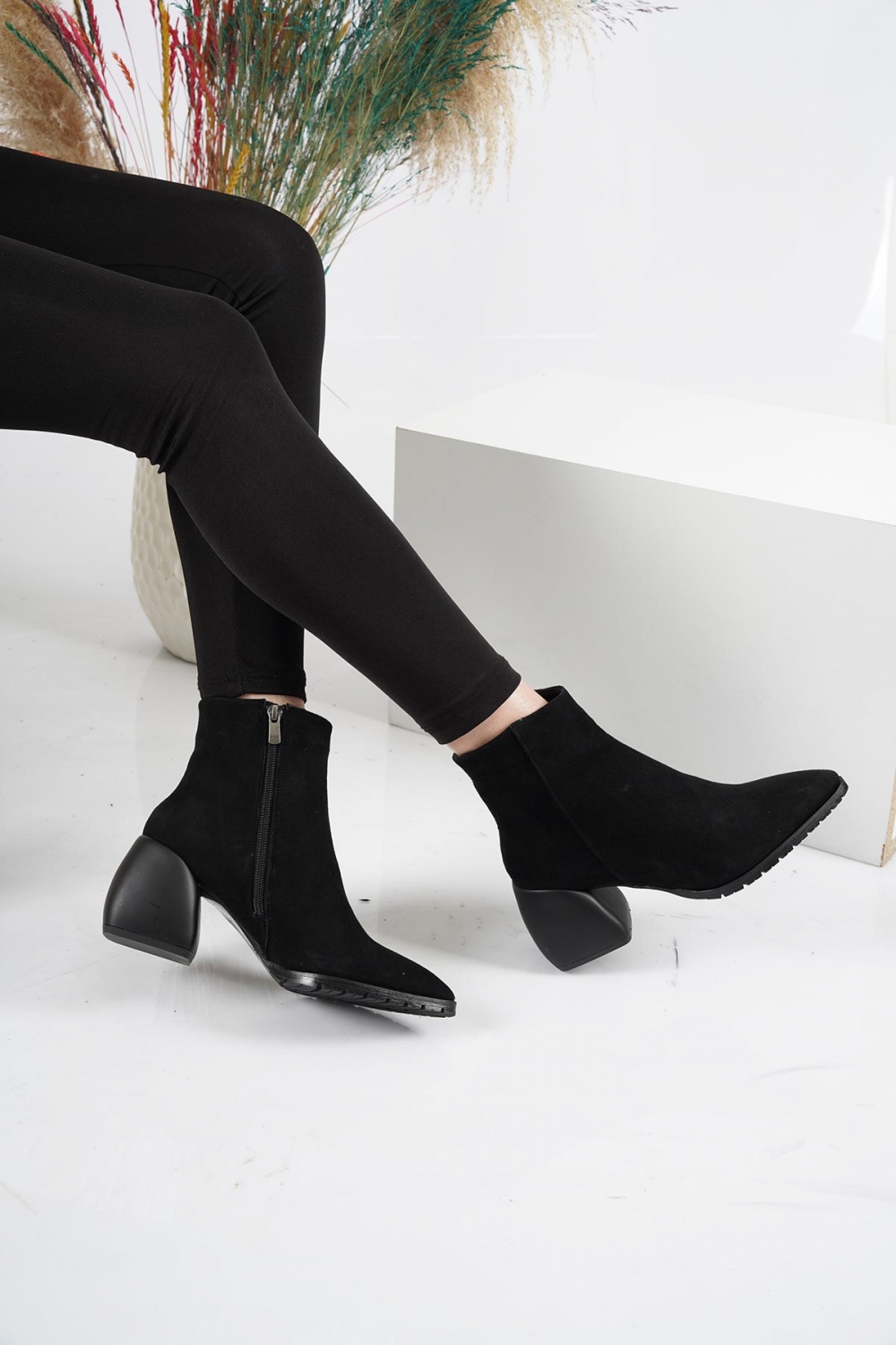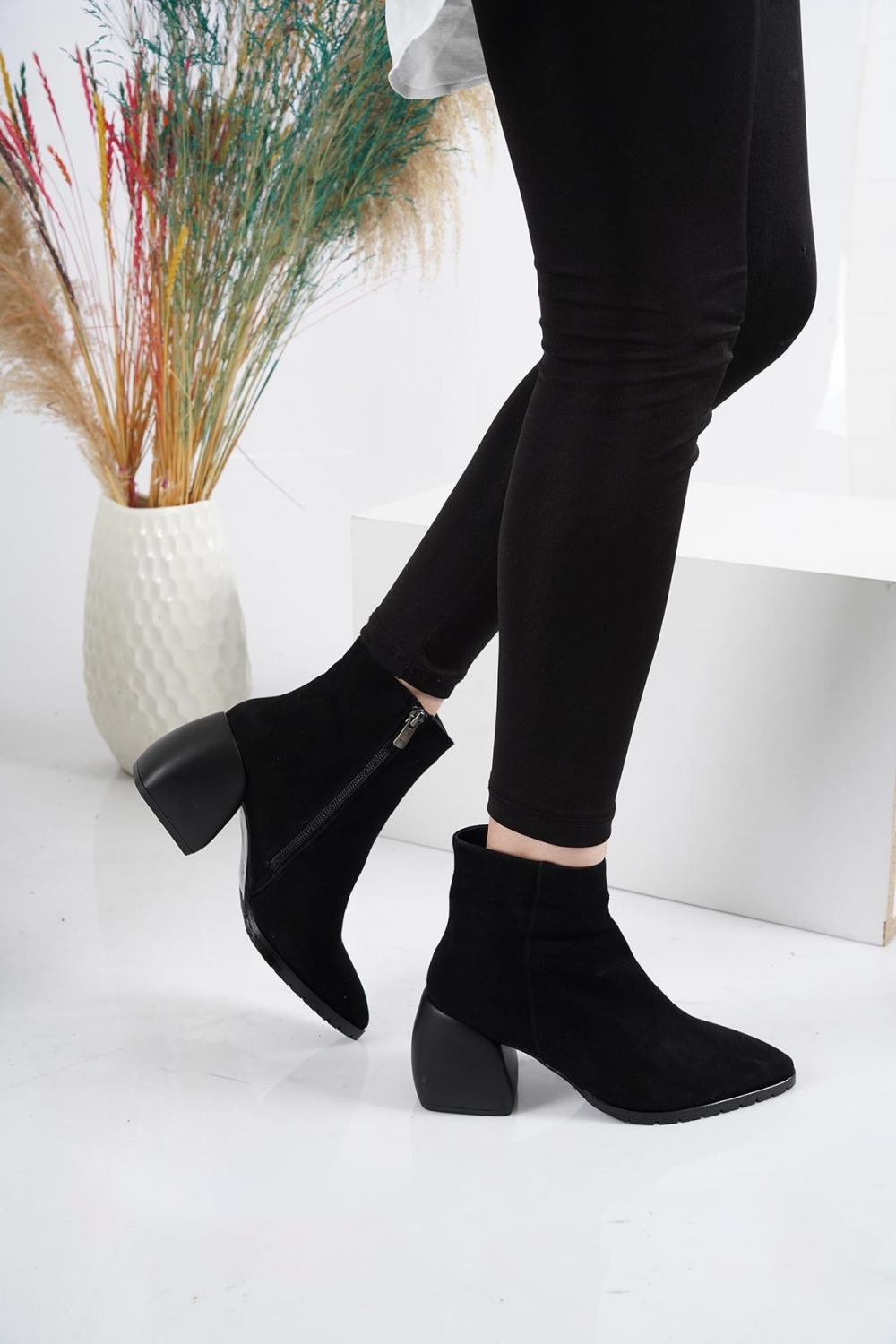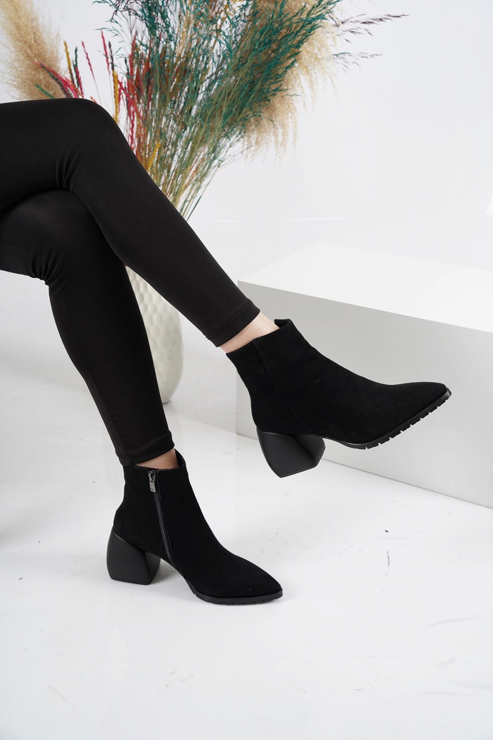 Hakiki Deri Siyah Süet Kadın Topuklu Bot 222127204