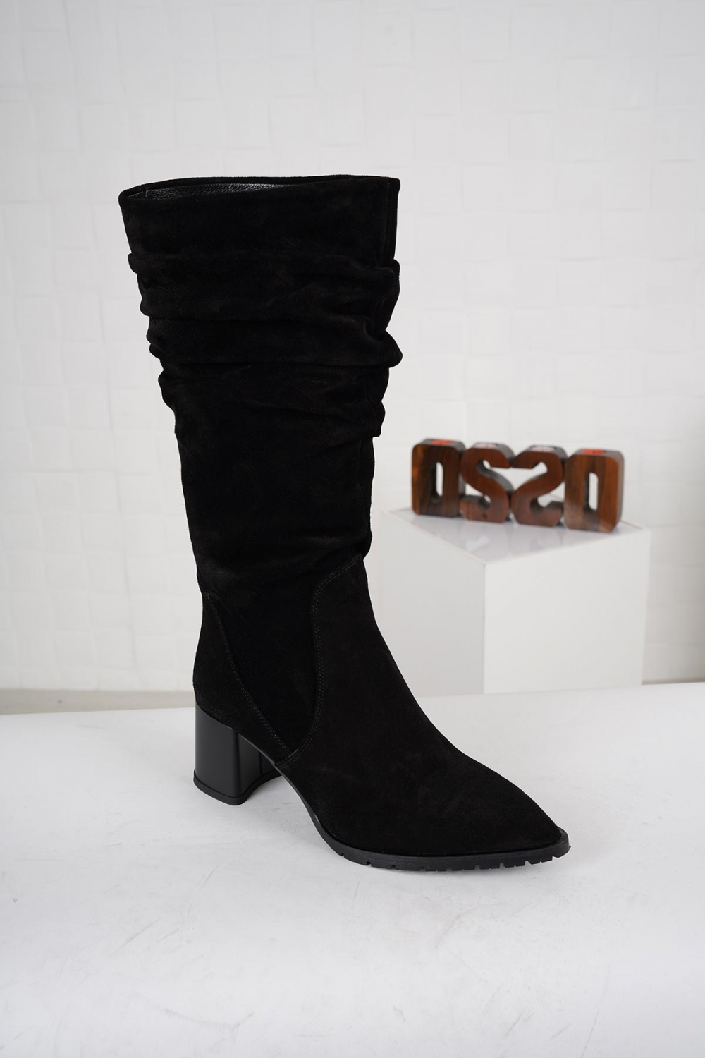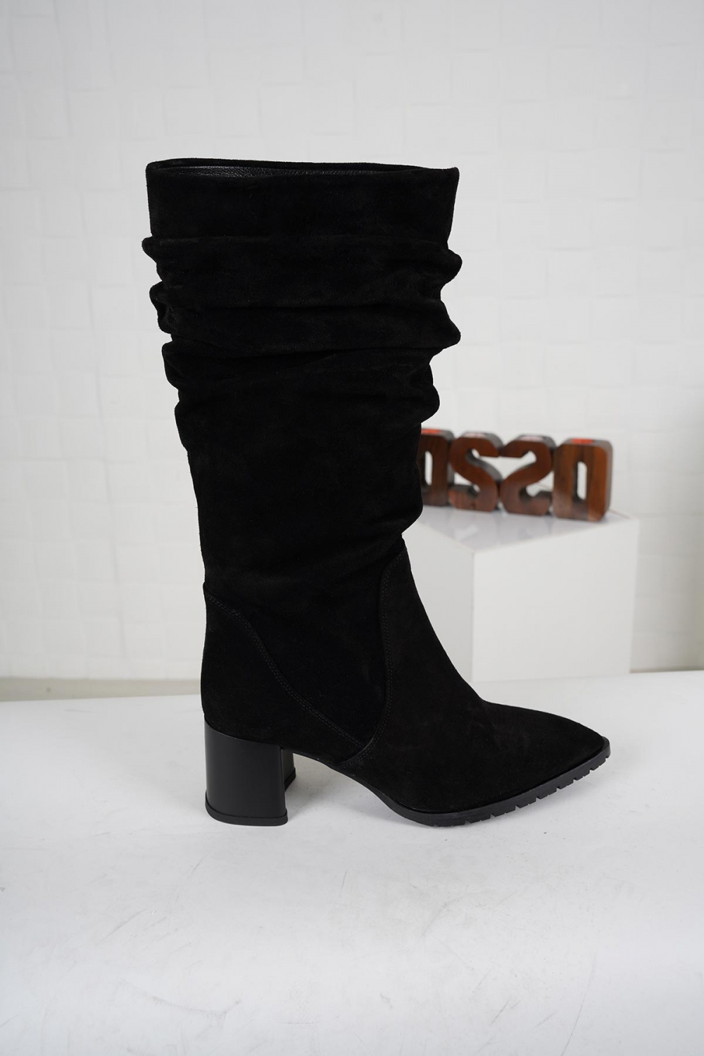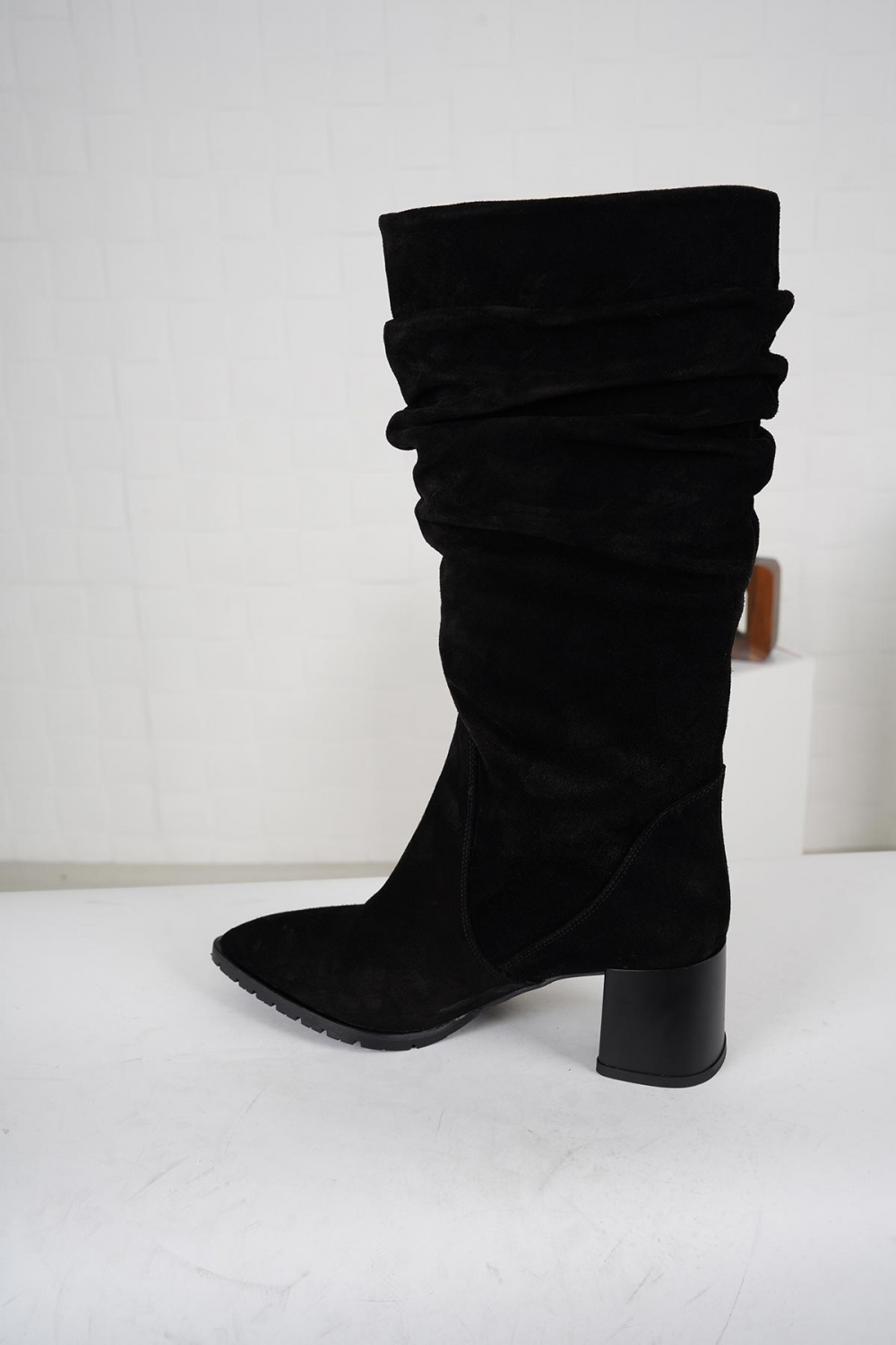 Hakiki Deri Siyah Süet Kadın Topuklu Çizme 212127304