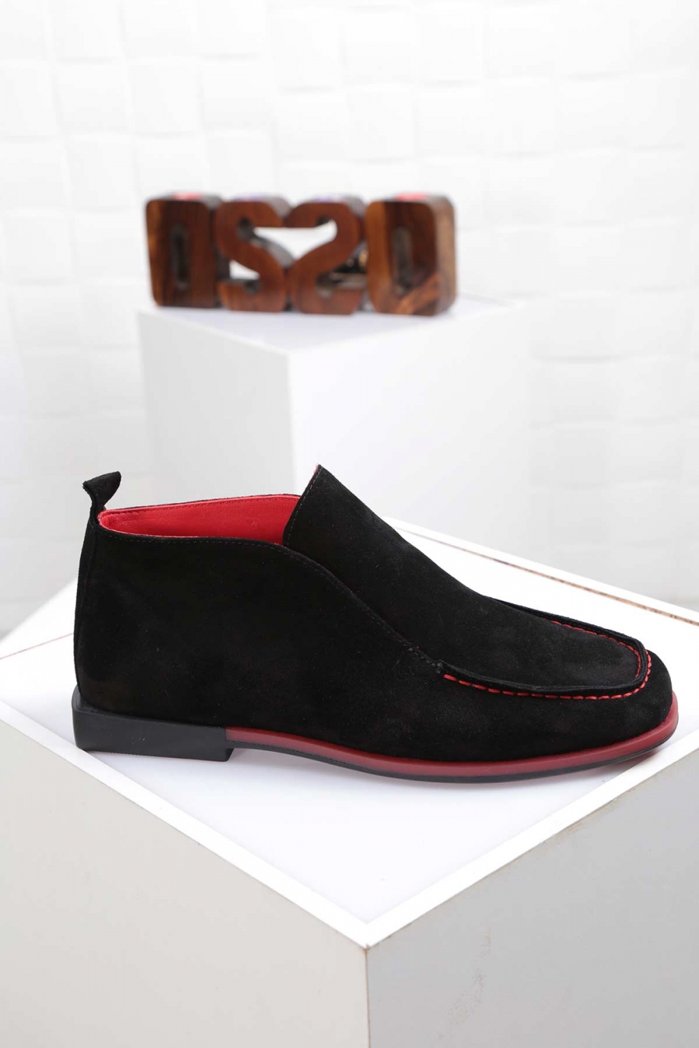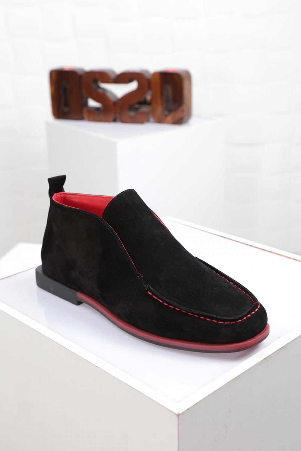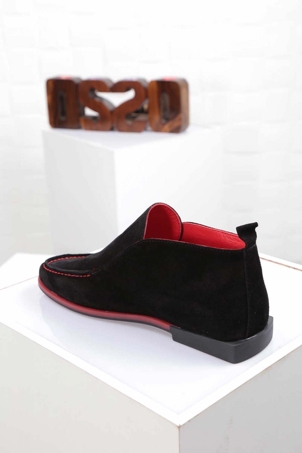 Hakiki Deri Siyah Süet-Kırmızı Astar Kadın Kısa Bot 212209203