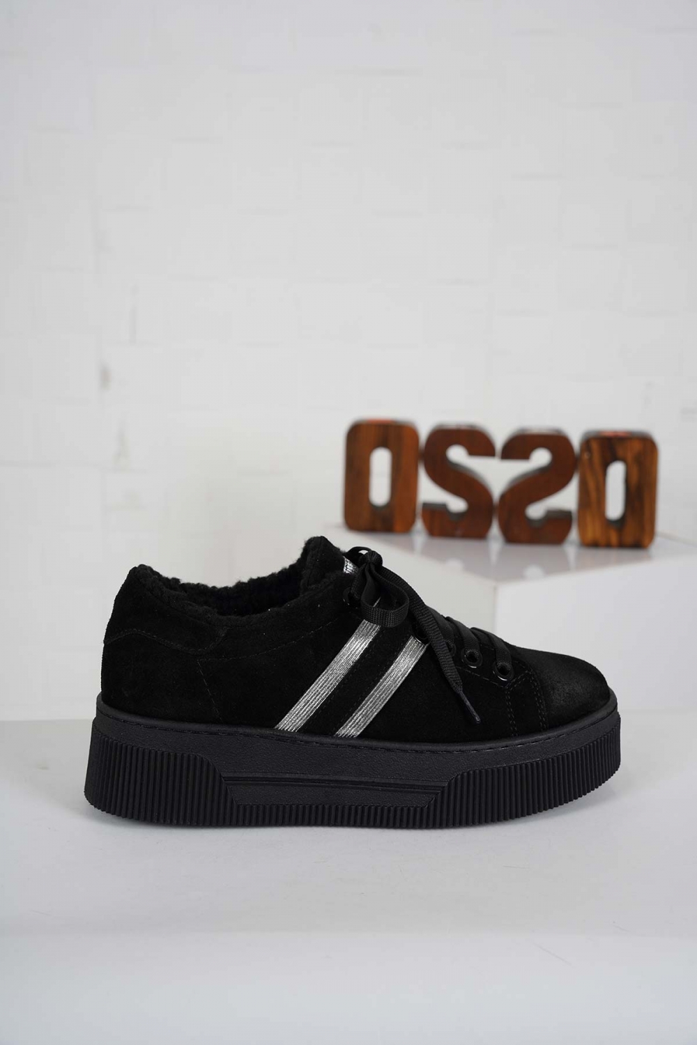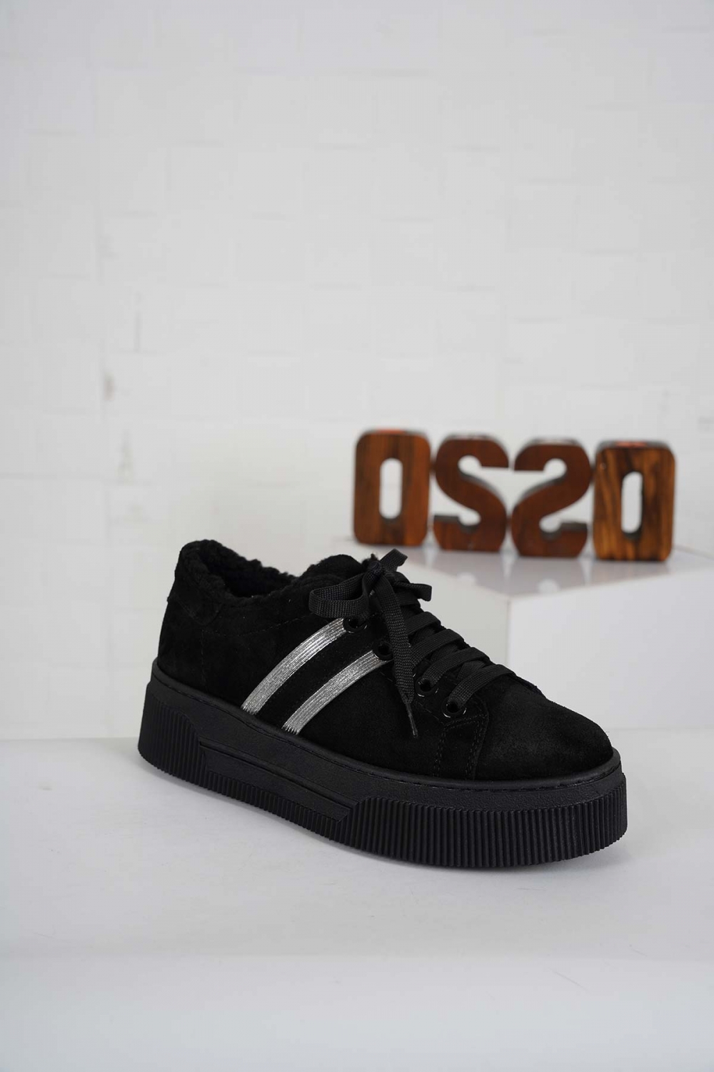 Hakiki Deri Siyah Süet-Sim Kadın Sneaker Ayakkabı 232225102