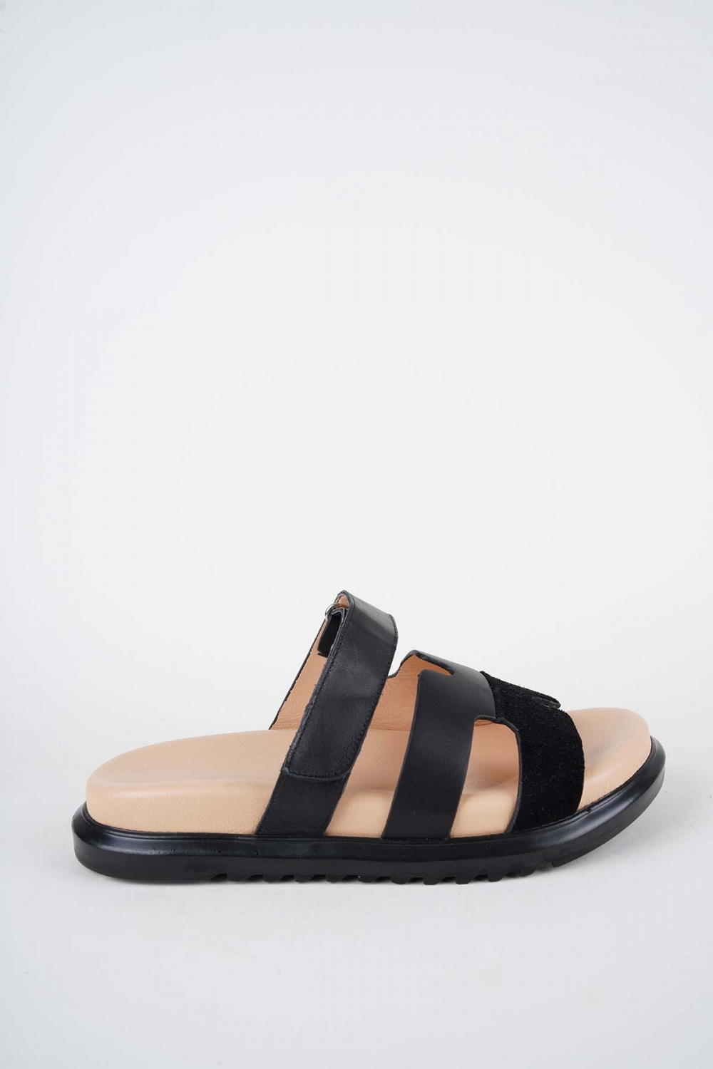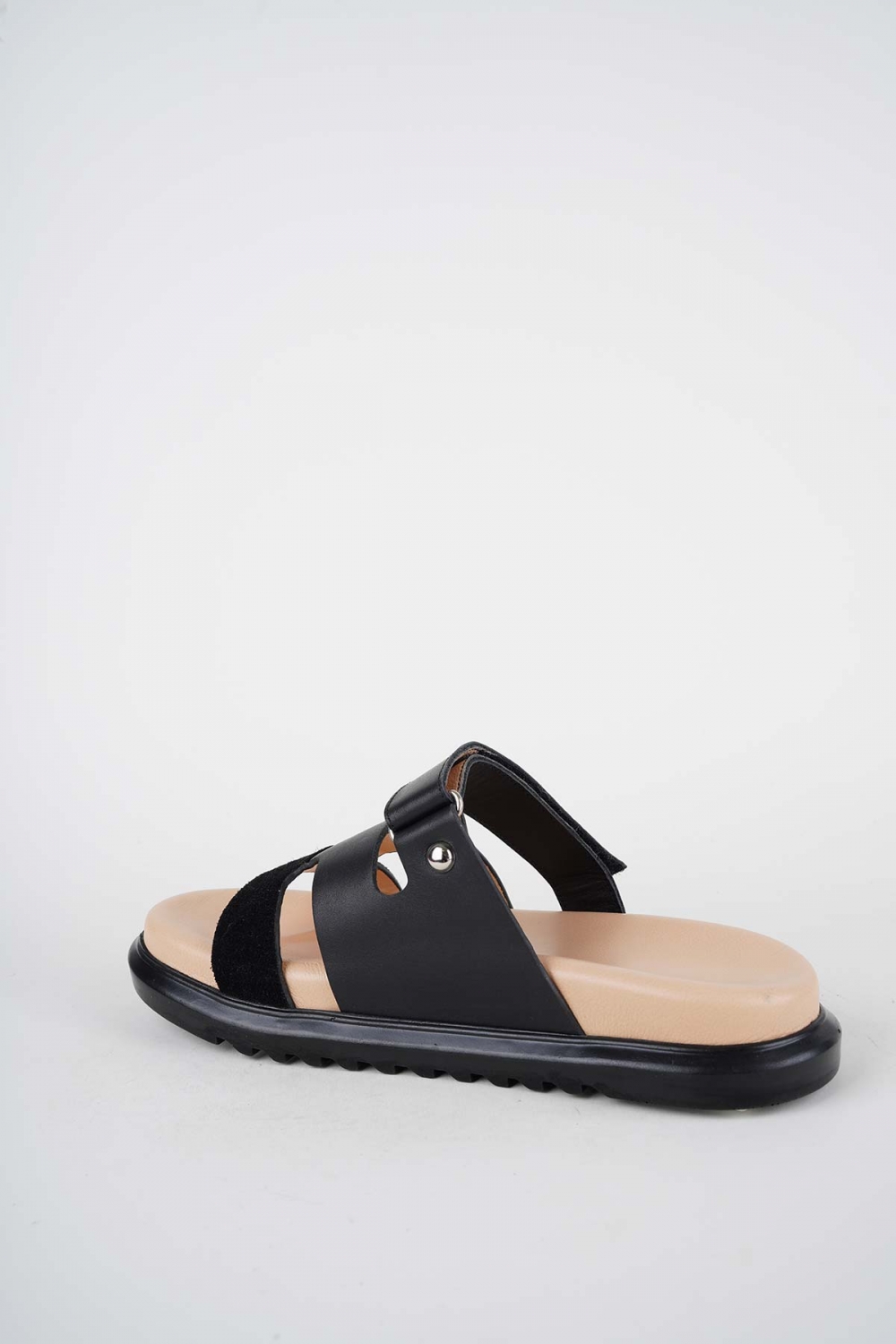 Hakiki Deri Siyah Süet-Siyah Kadın Düz Terlik 261162601