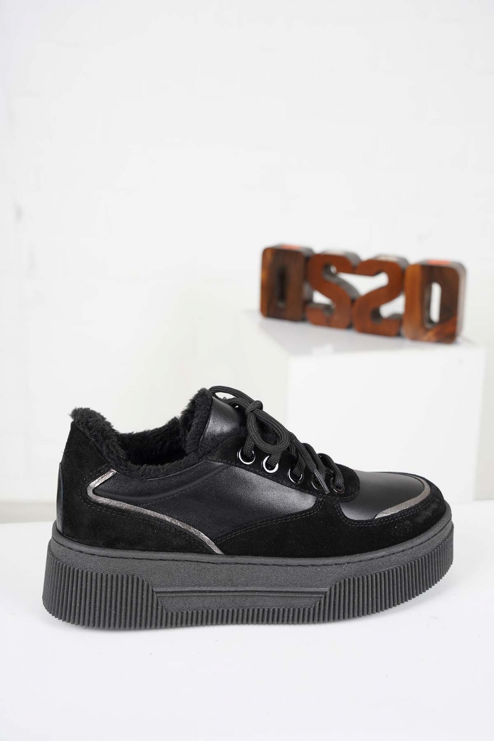 Hakiki Deri Siyah Süet-Siyah Kadın Sneaker Ayakkabı 232225104