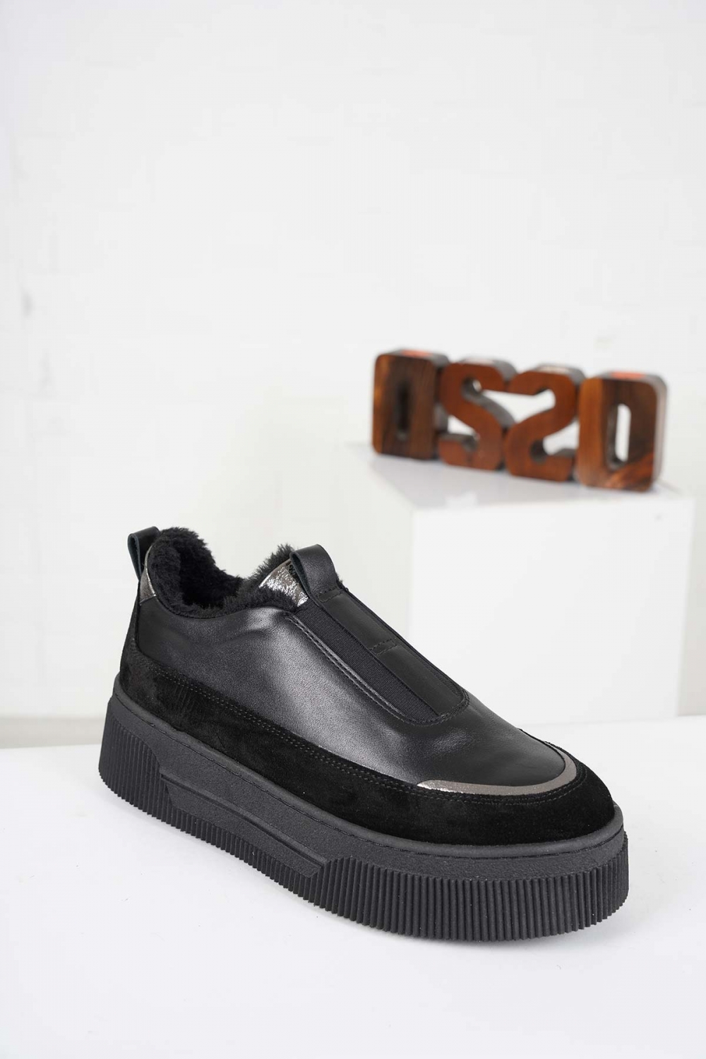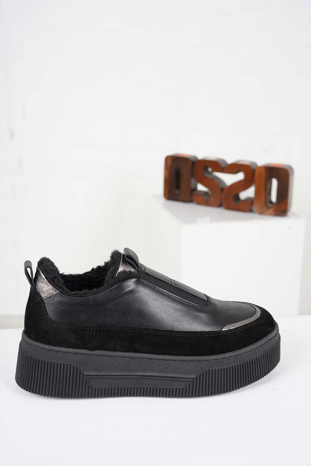 Hakiki Deri Siyah Süet-Siyah Kadın Sneaker Ayakkabı 232225106
