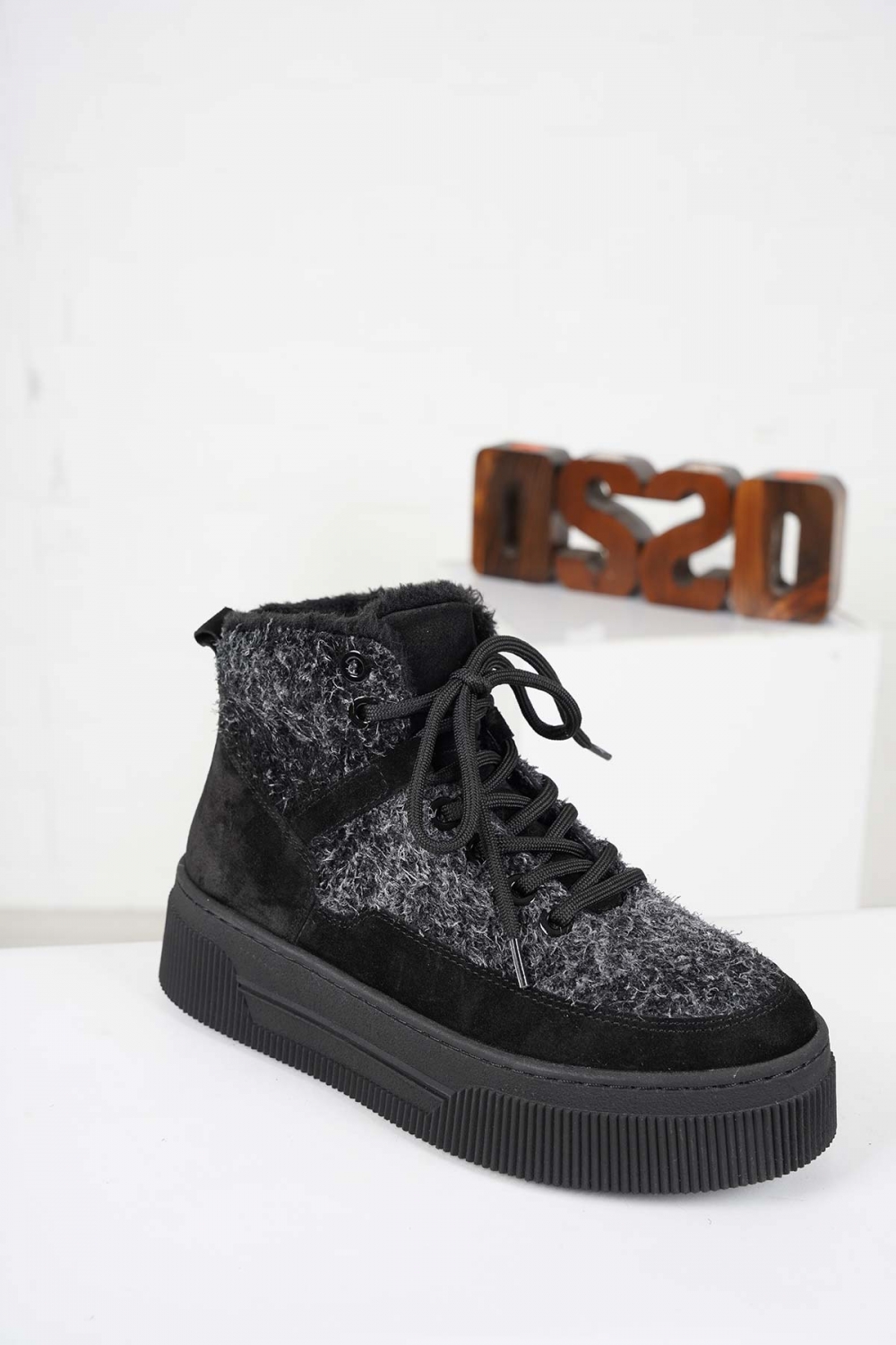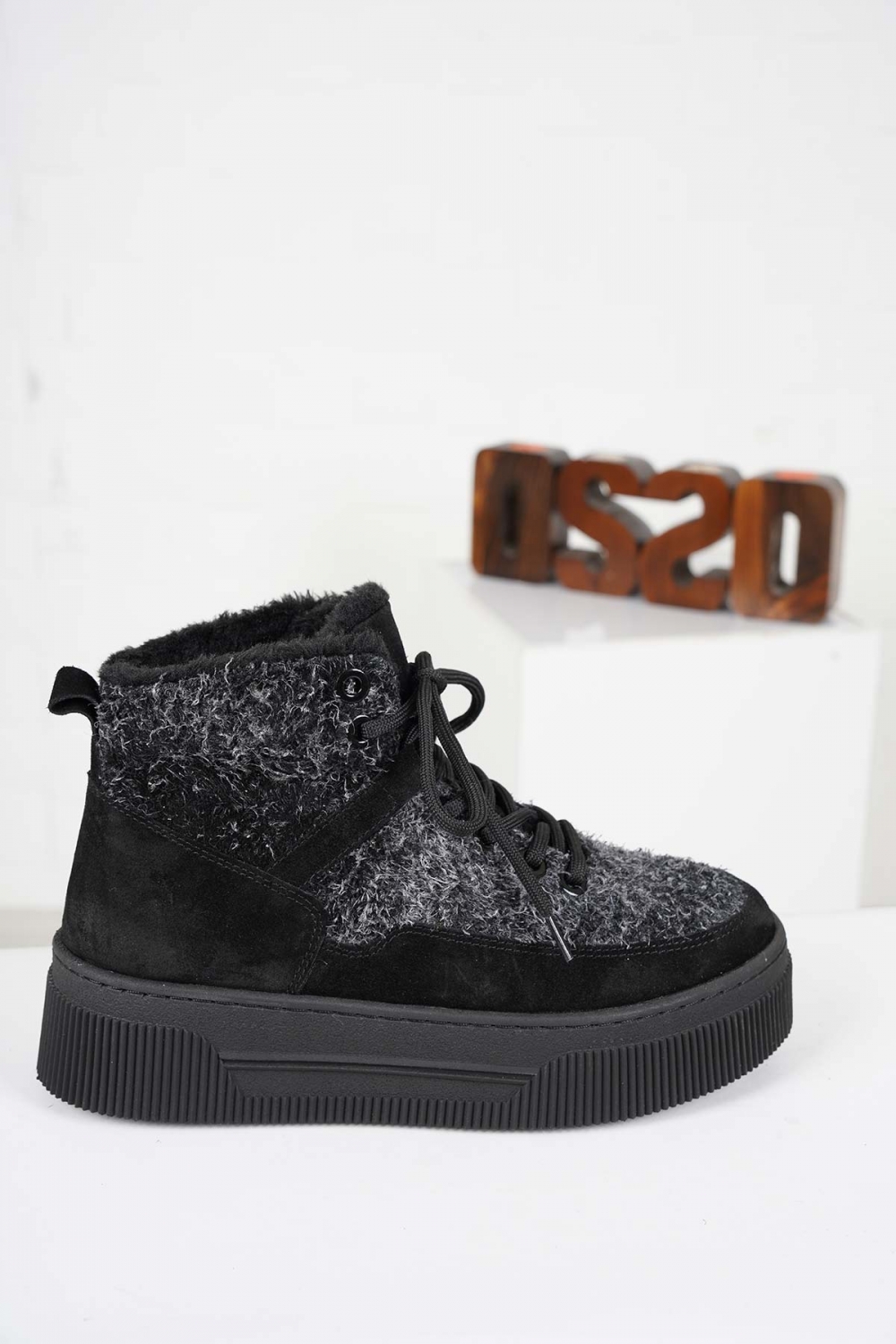 Hakiki Deri Siyah Süet-Siyah Kırçıllı Kadın Sneaker Bot 232225208