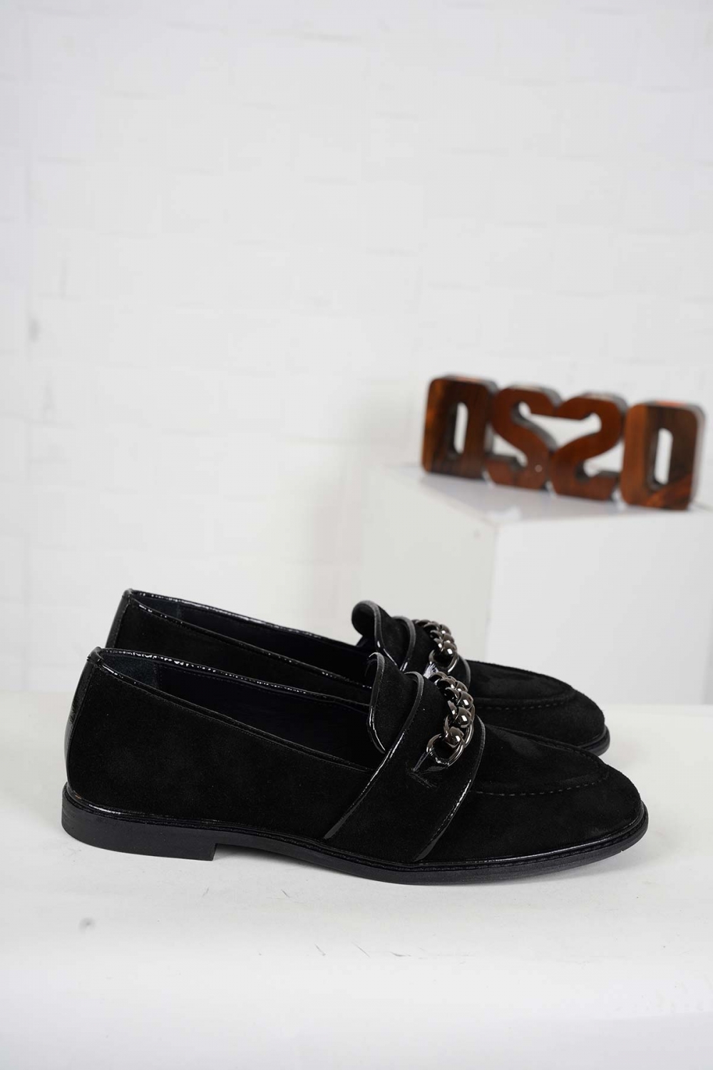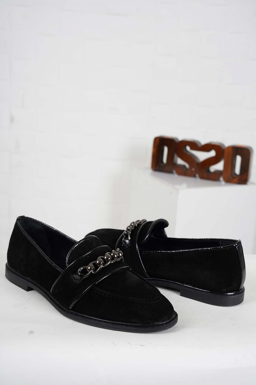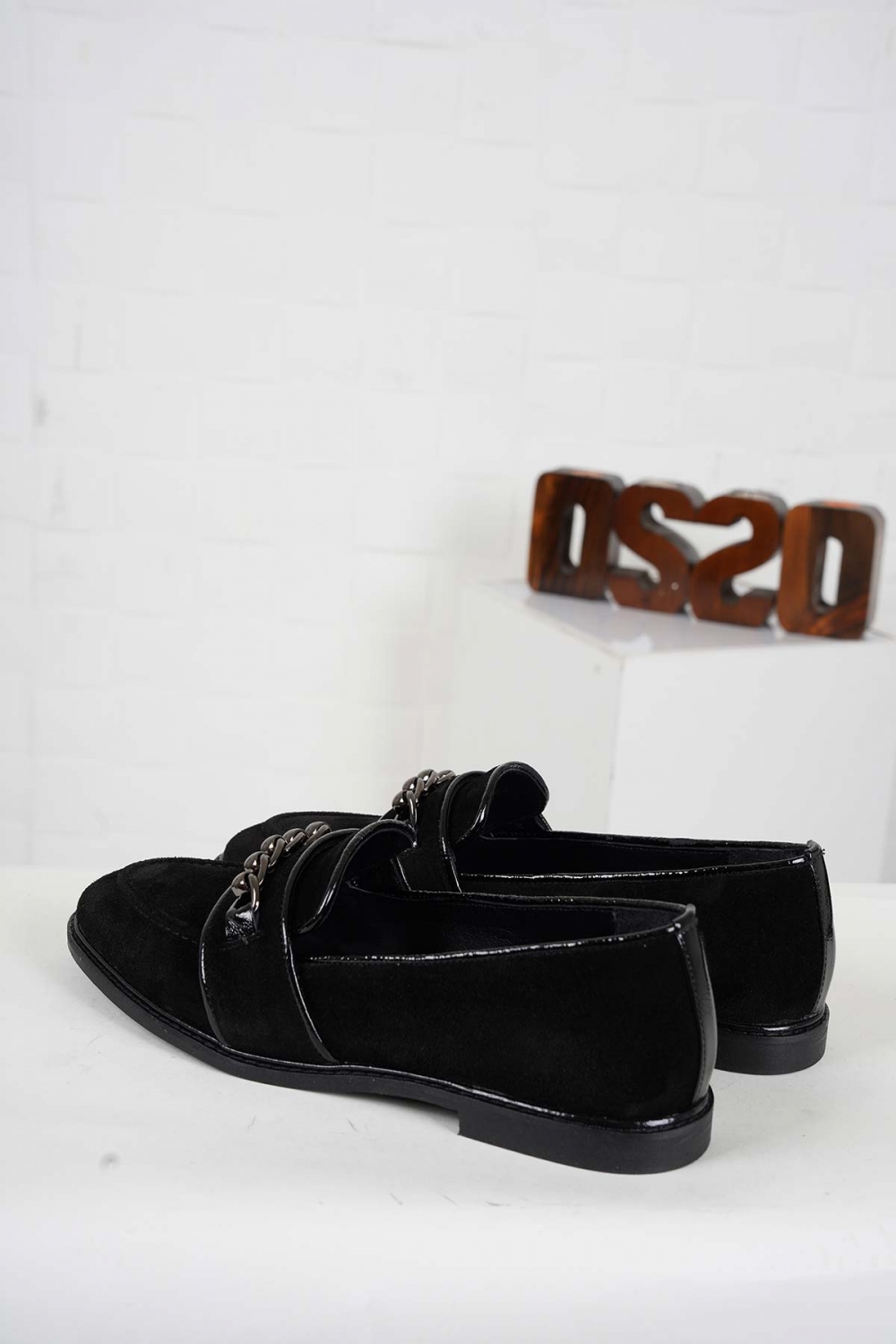 Hakiki Deri Siyah Süet-Siyah Rugan Kadın Casual Ayakkabı 242127103