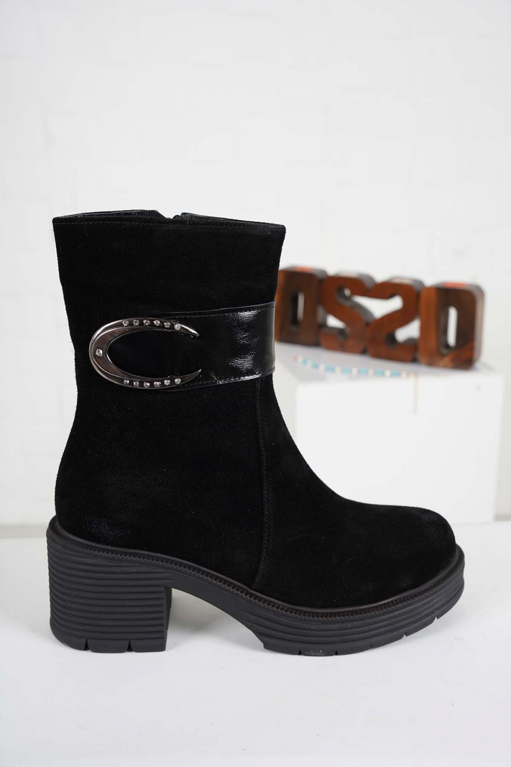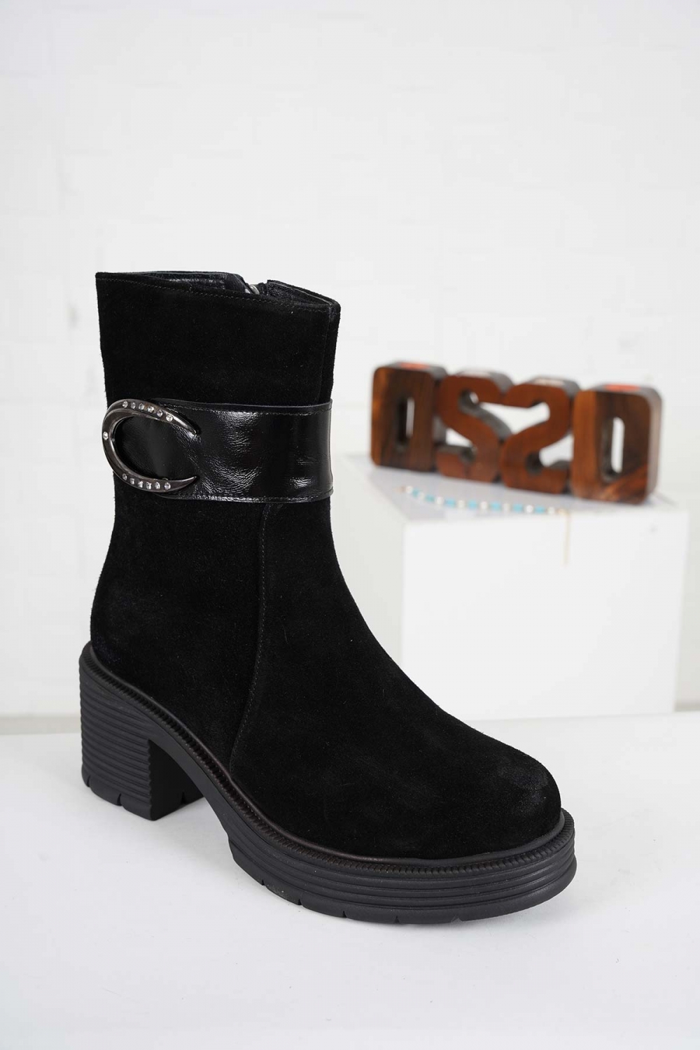 Hakiki Deri Siyah Süet-Siyah Rugan Kadın Topuklu Bot 232186211