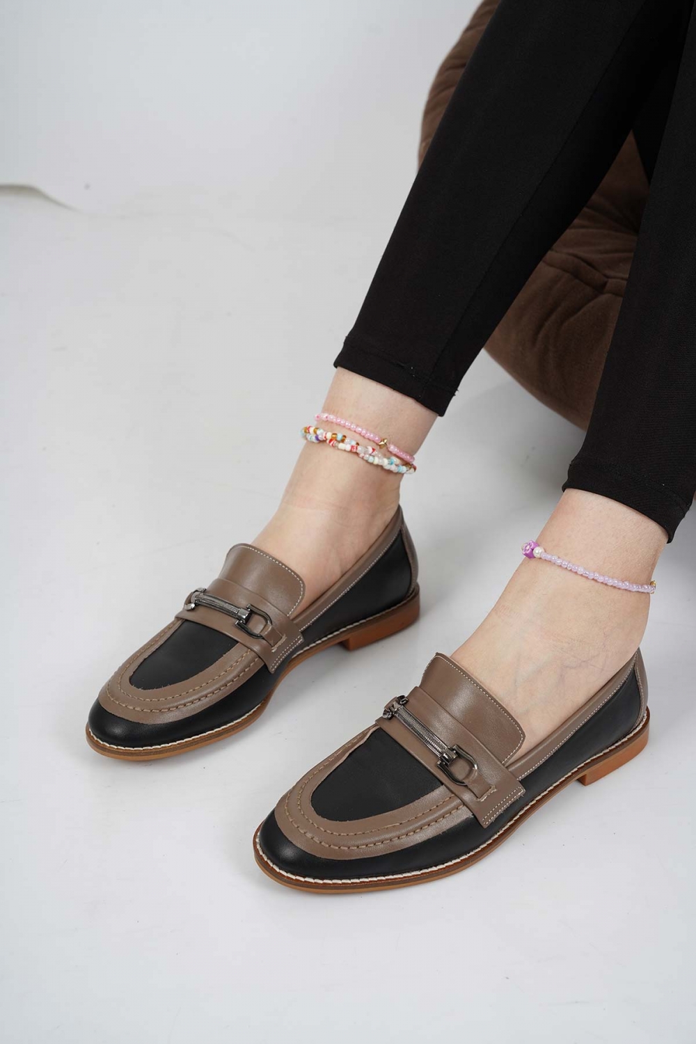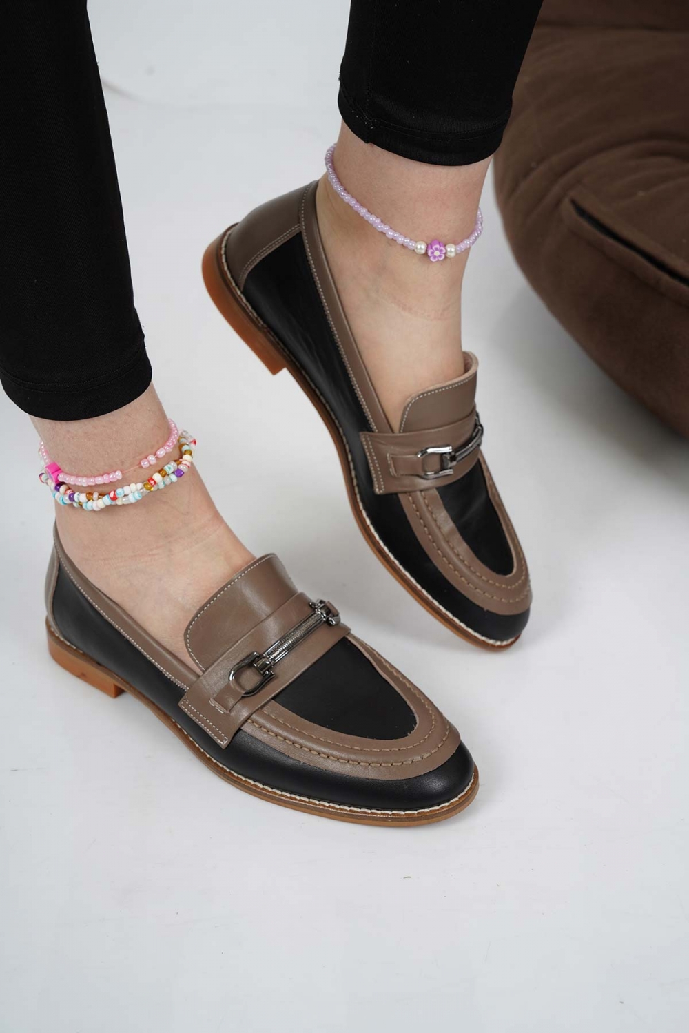 Hakiki Deri Siyah-Vizon Kadın Casual Ayakkabı 232127102