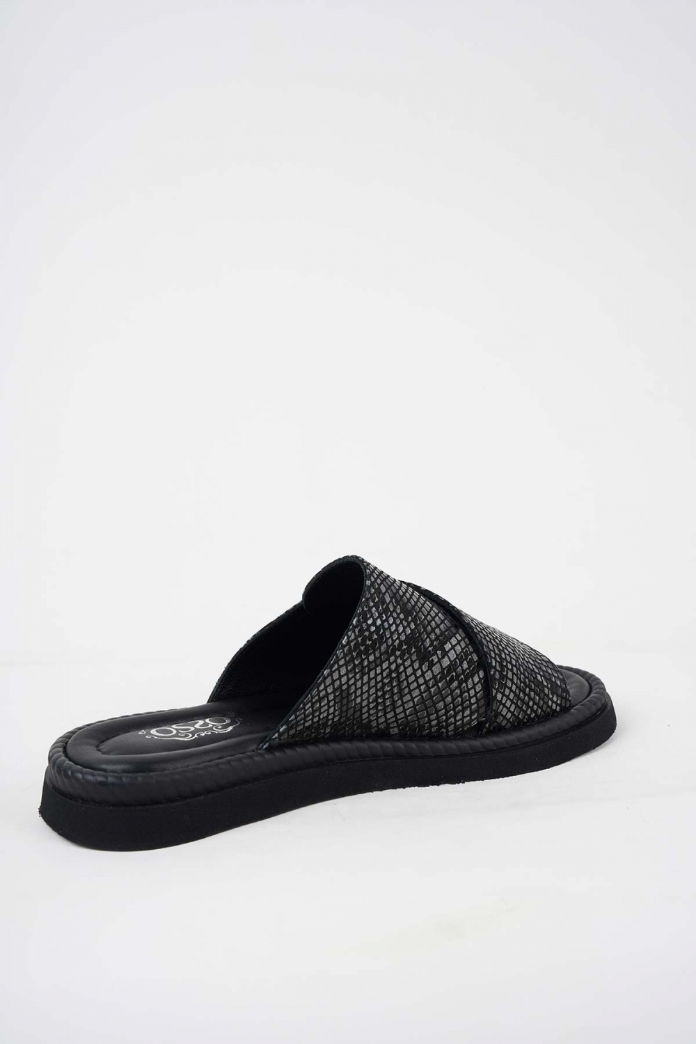 Hakiki Deri Siyah Yılan Kadın Düz Terlik 251173602
