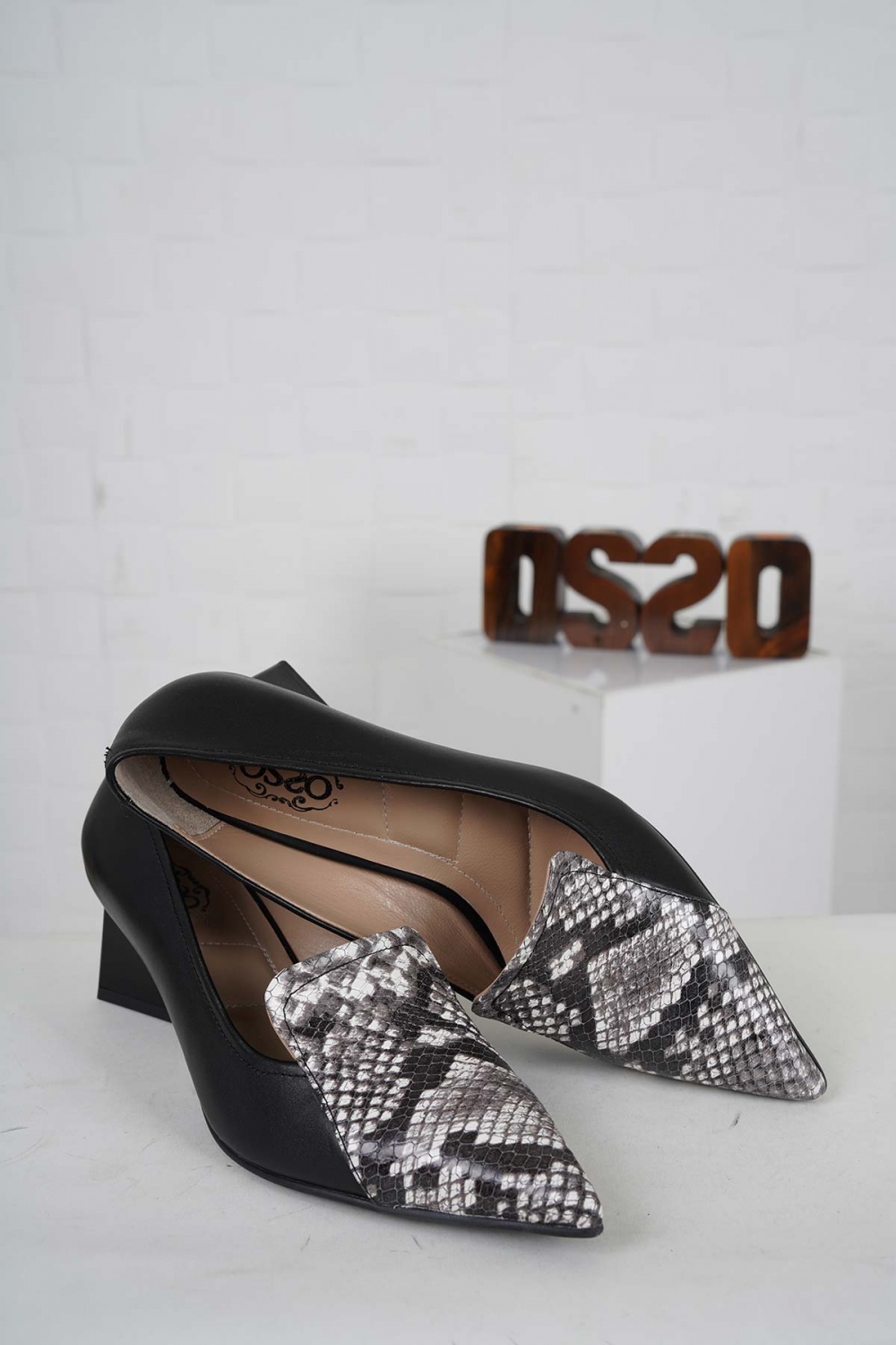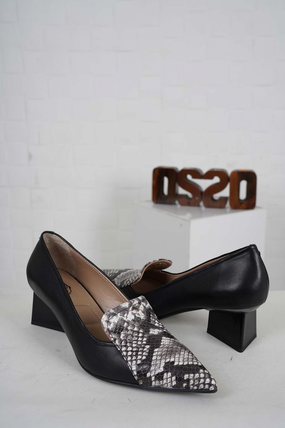 Hakiki Deri Siyah Yılan-Siyah Kadın Topuklu Ayakkabı 242127113