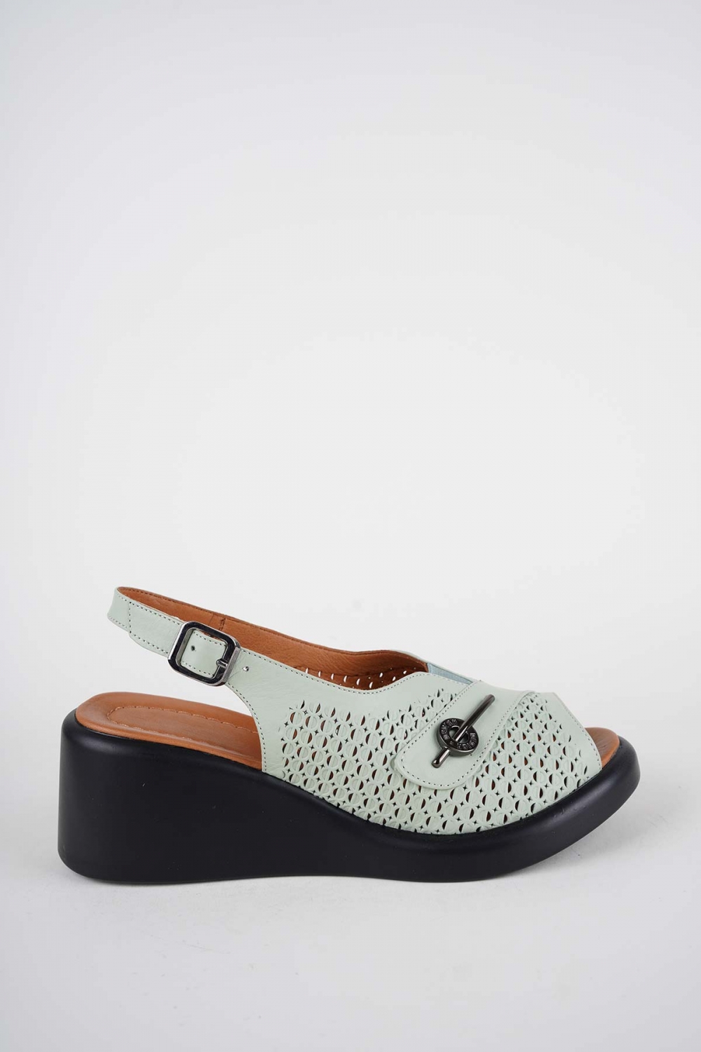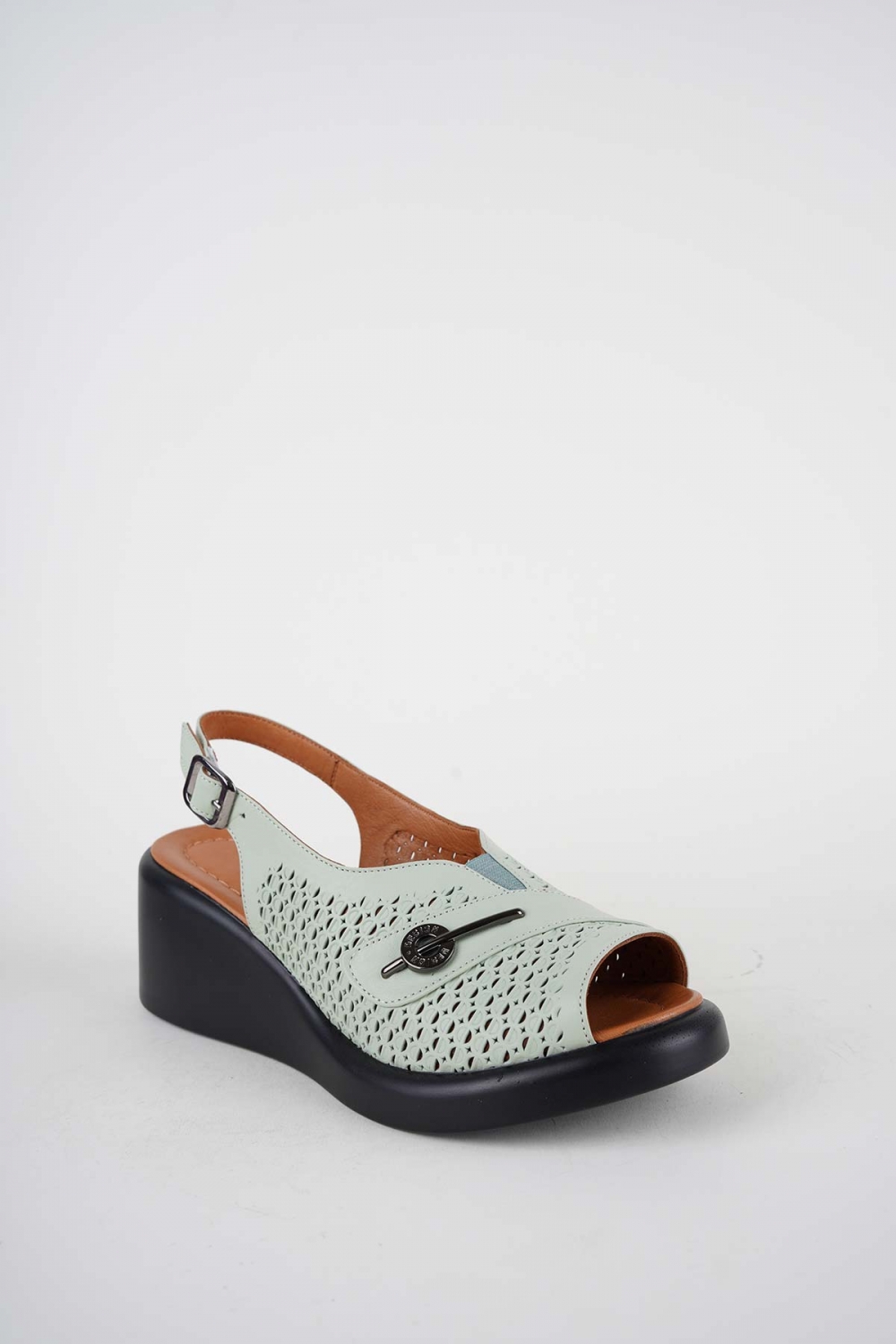 Hakiki Deri Su Yeşili Kadın Dolgu Topuklu Sandalet 261229509
