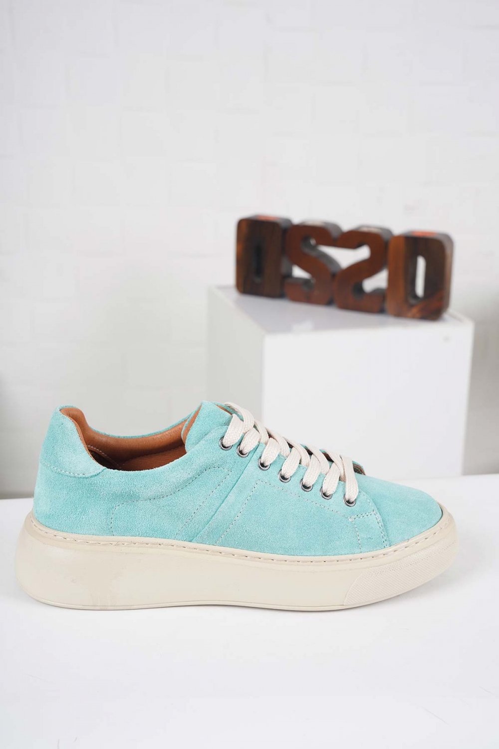 Hakiki Deri Su Yeşili Süet Kadın Sneaker Ayakkabı 212220102