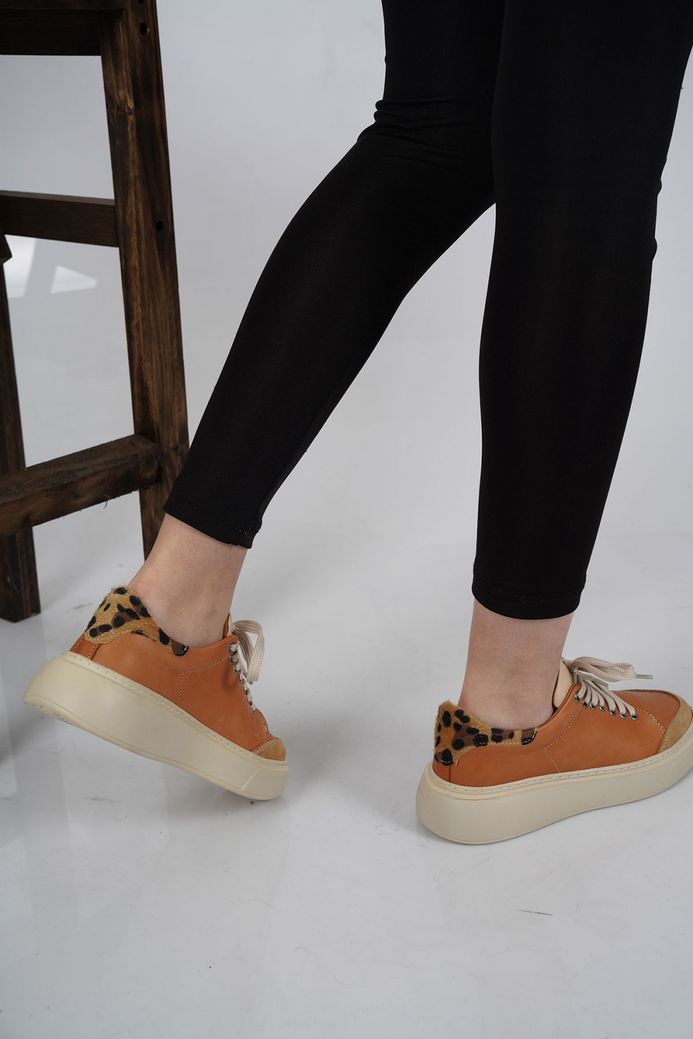 Hakiki Deri Taba-Bej-Taba Benek Kadın Sneaker Ayakkabı 221220104