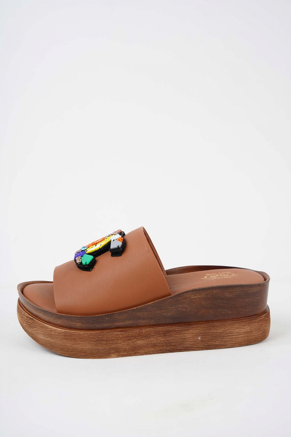Hakiki Deri Taba Kadın Dolgu Topuklu Terlik 261114602