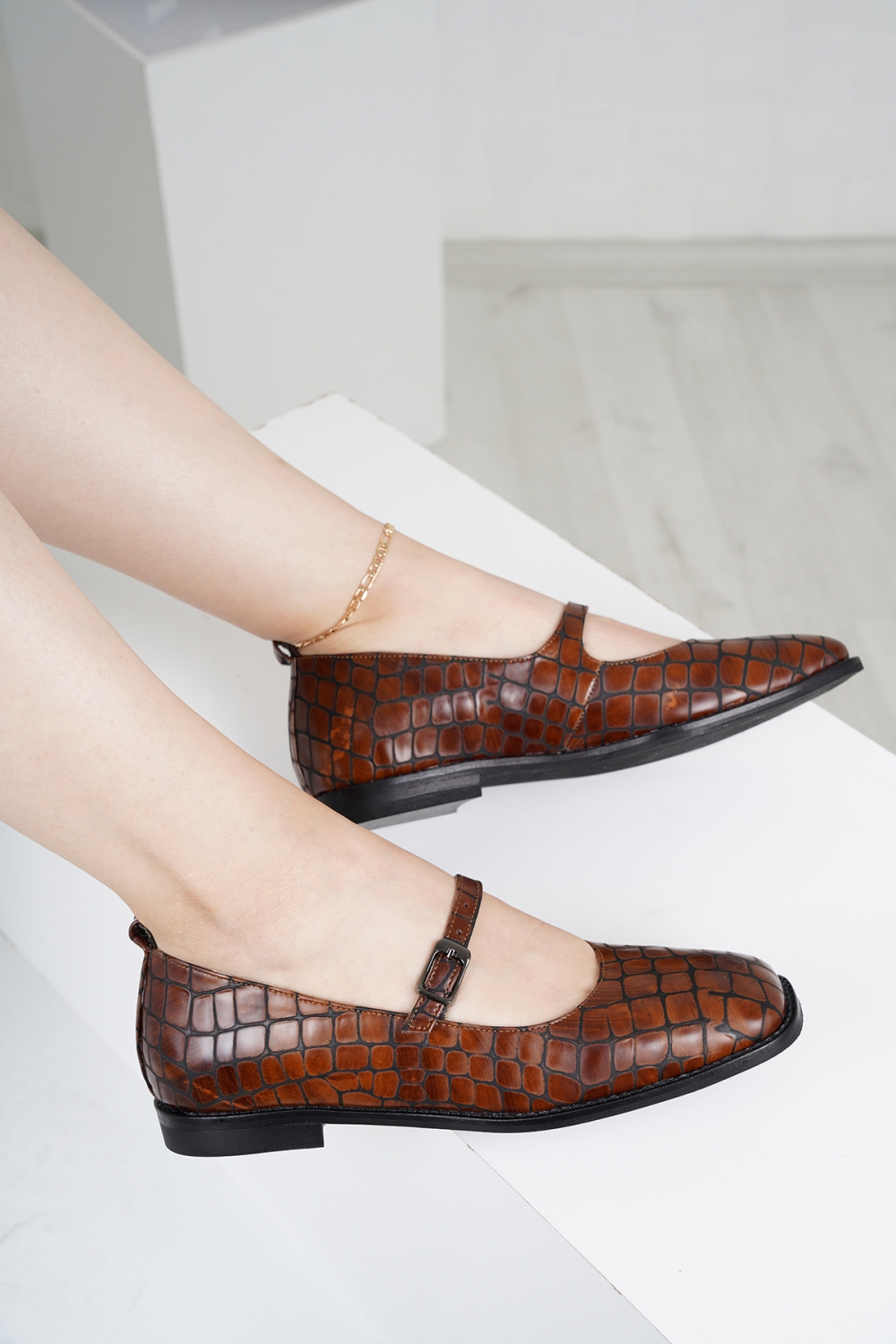 Hakiki Deri Taba Mat Kroko Kadın Klasik Ayakkabı 221127106