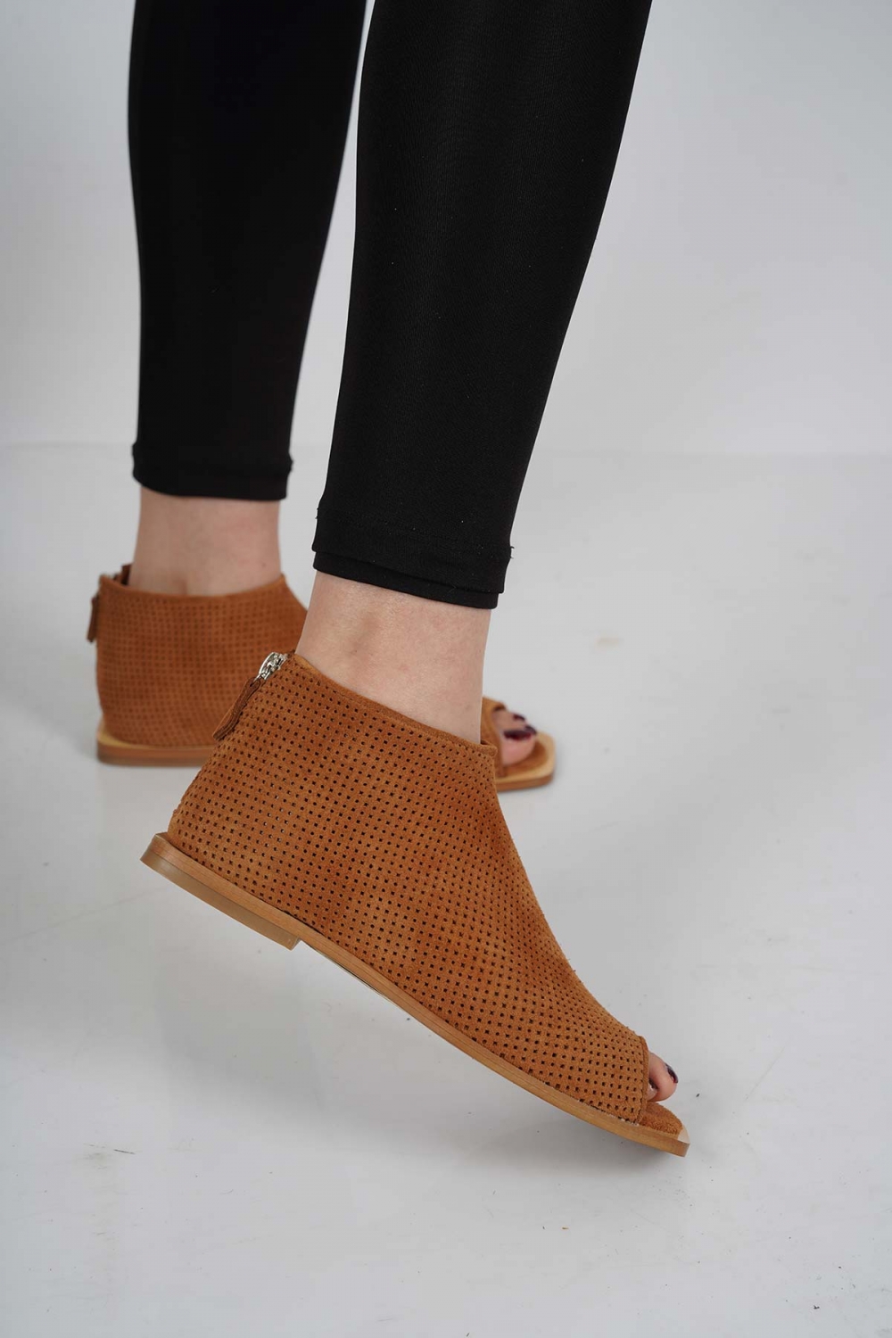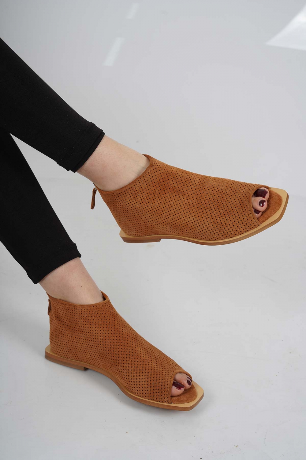 Hakiki Deri Taba Süet Kadın Burnu Açık Bot 221110201