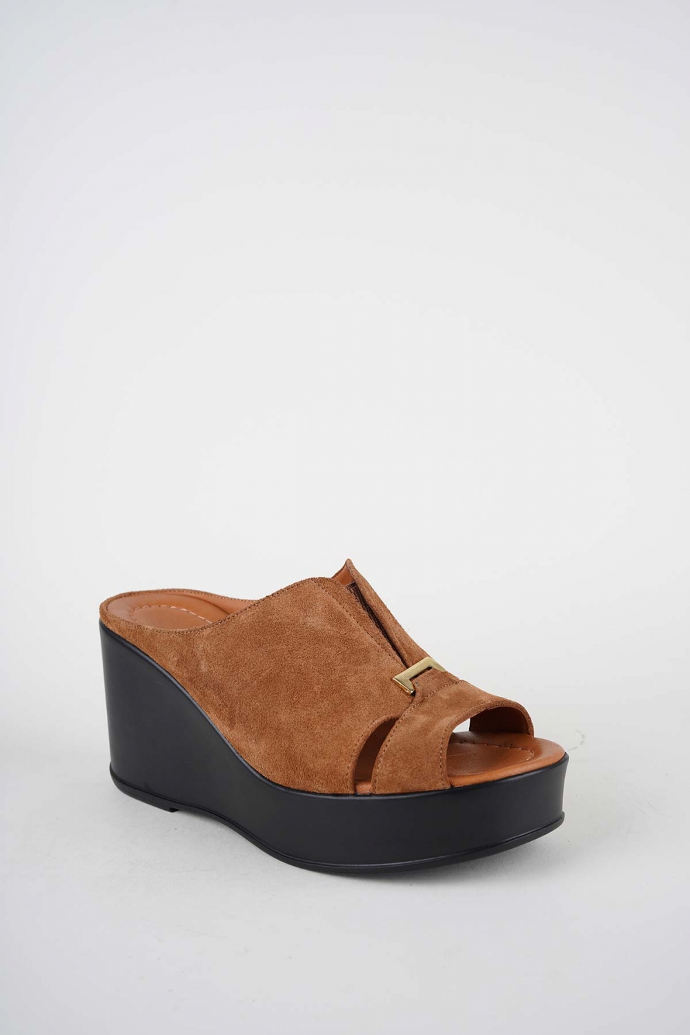 Hakiki Deri Taba Süet Kadın Dolgu Topuklu Terlik 261229605