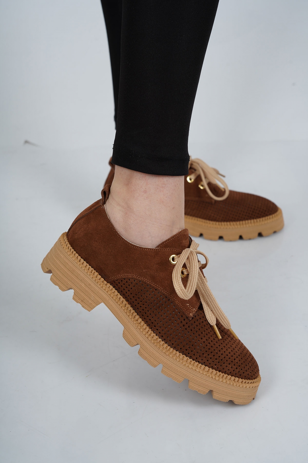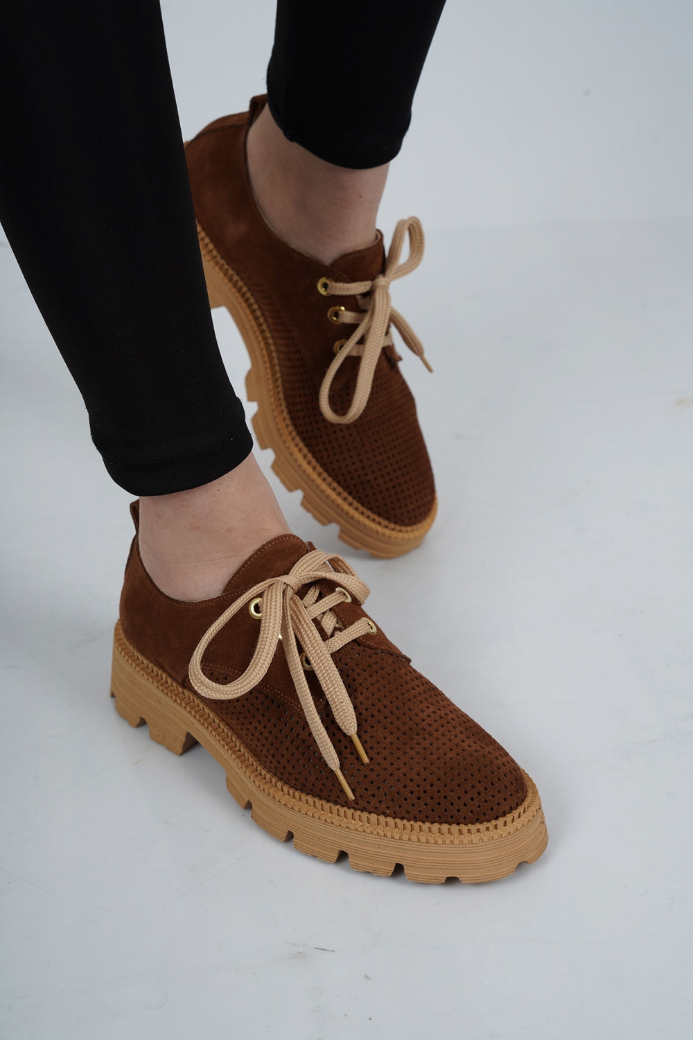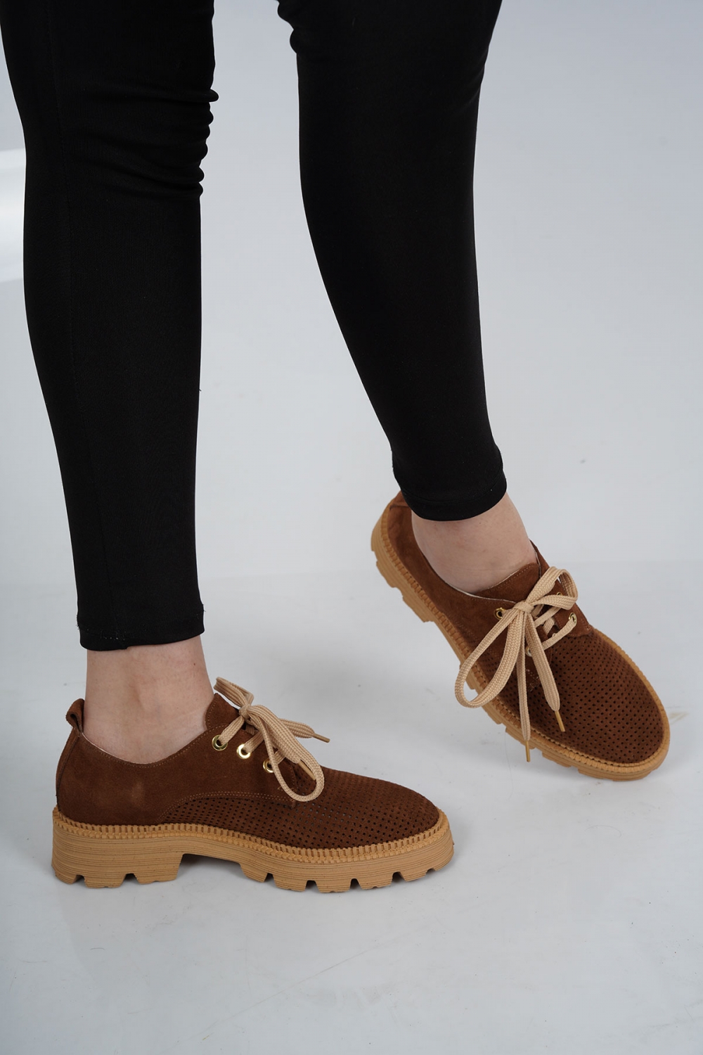 Hakiki Deri Taba Süet Kadın Oxford Ayakkabı 222127101