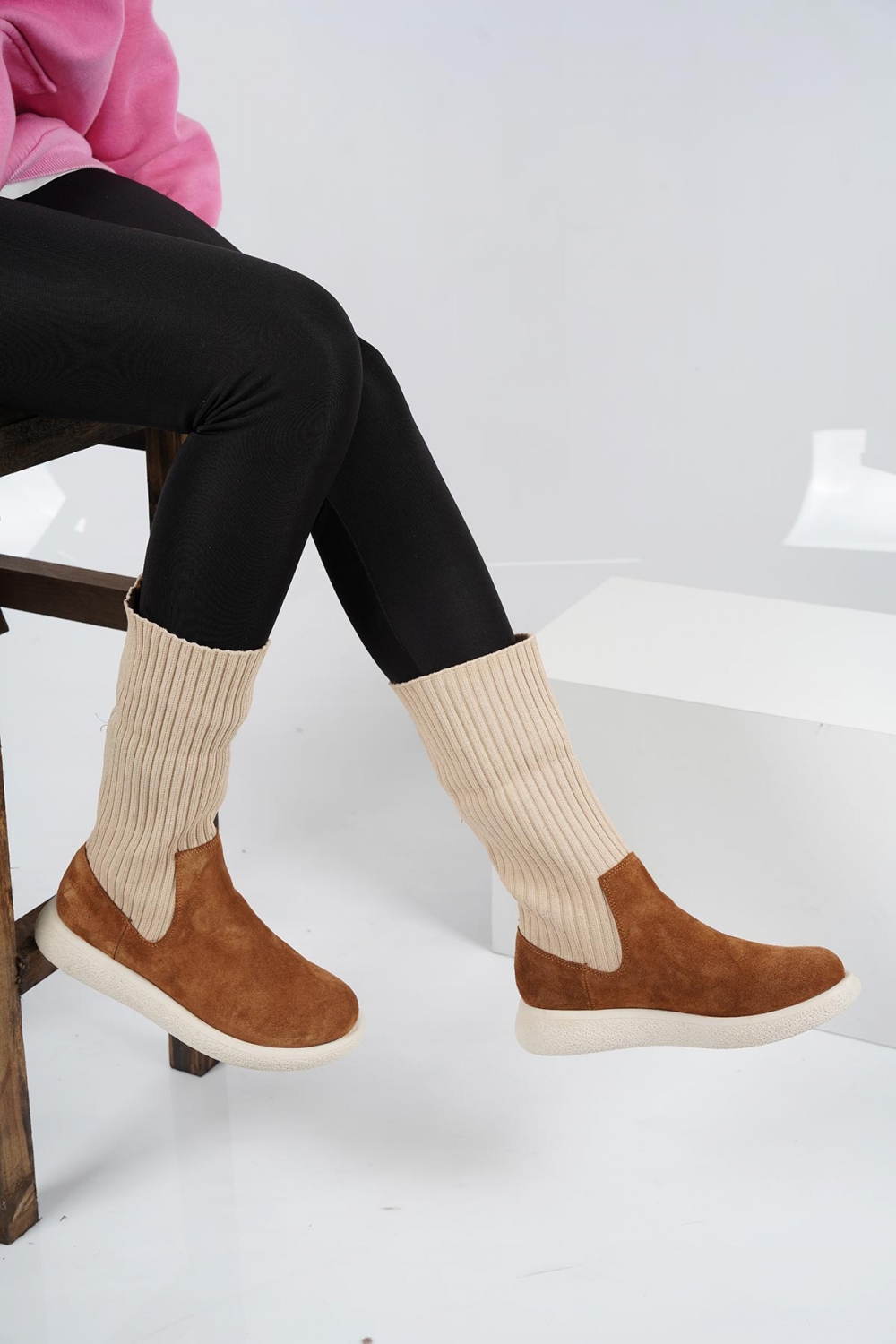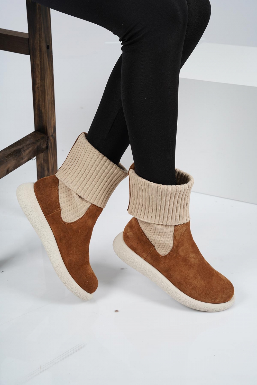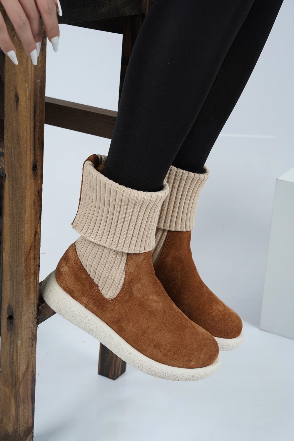 Hakiki Deri Taba Süet Kadın Kısa Bot 222135203