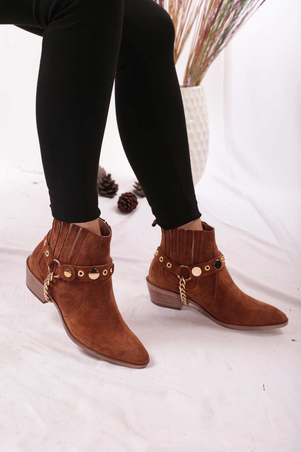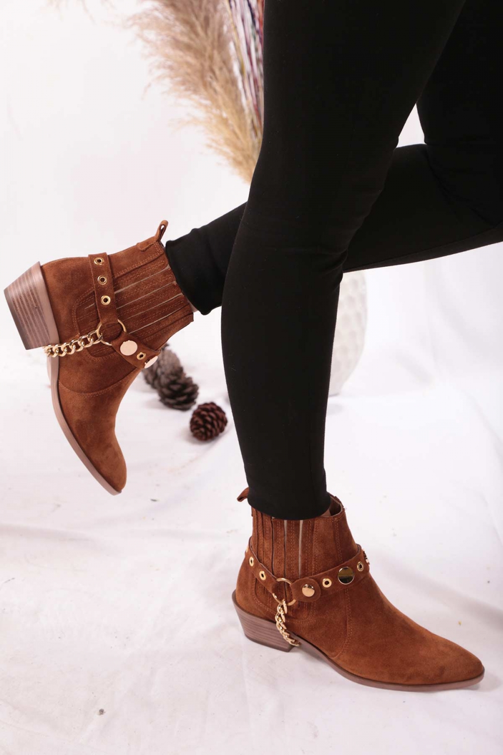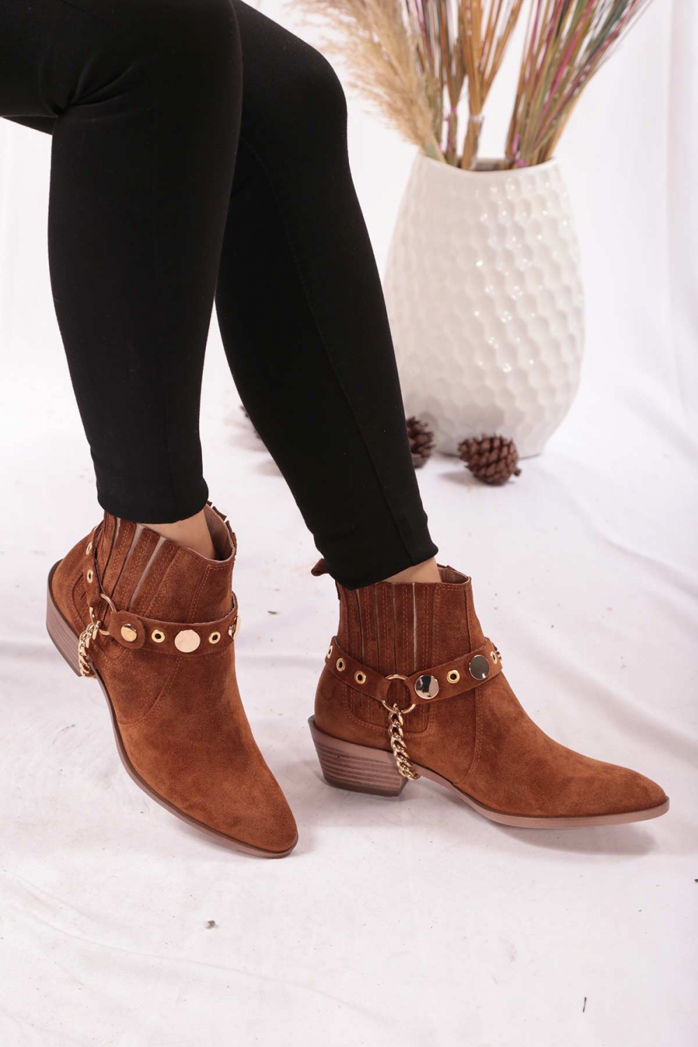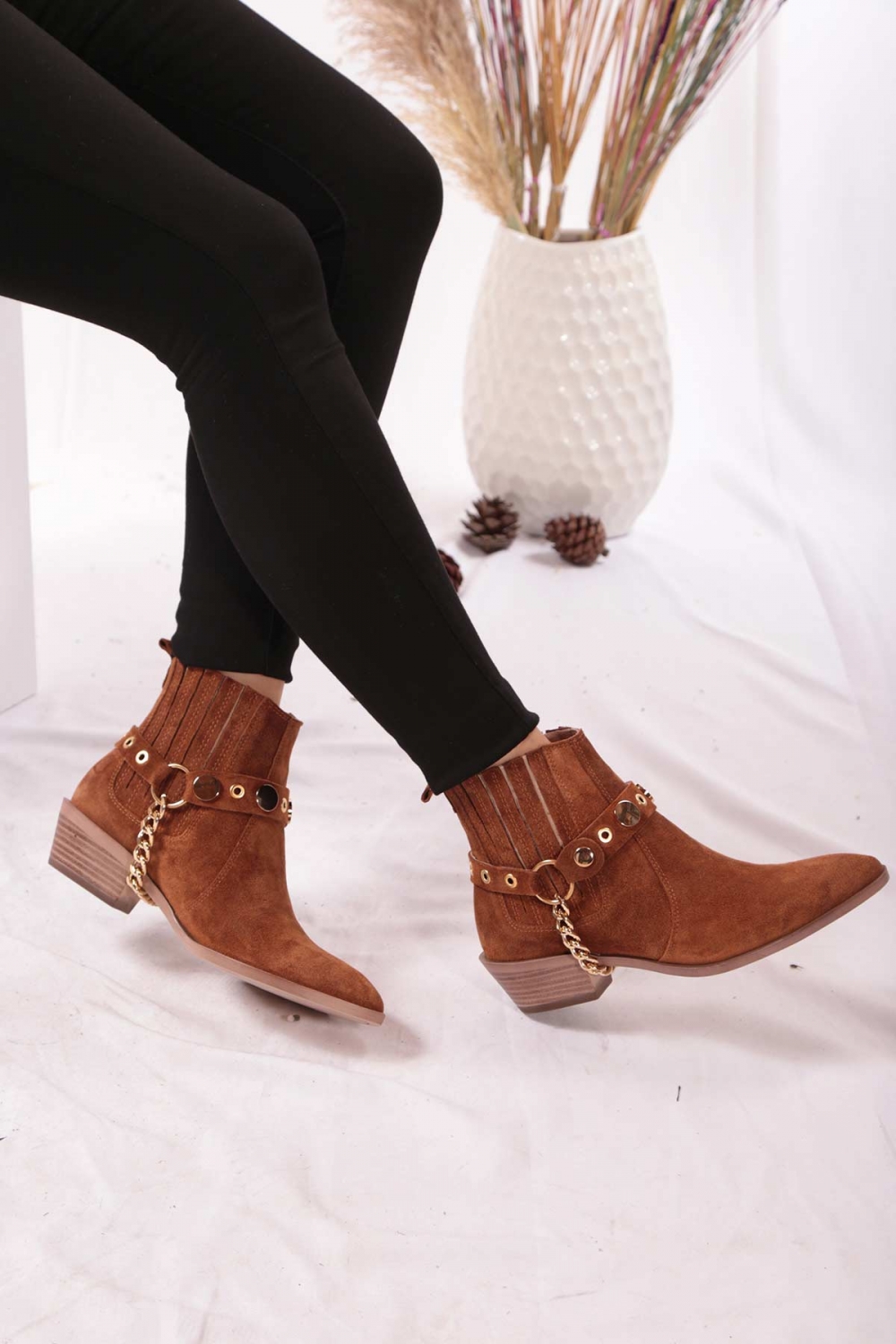 Hakiki Deri Taba Süet Kadın Topuklu Bot 202110218