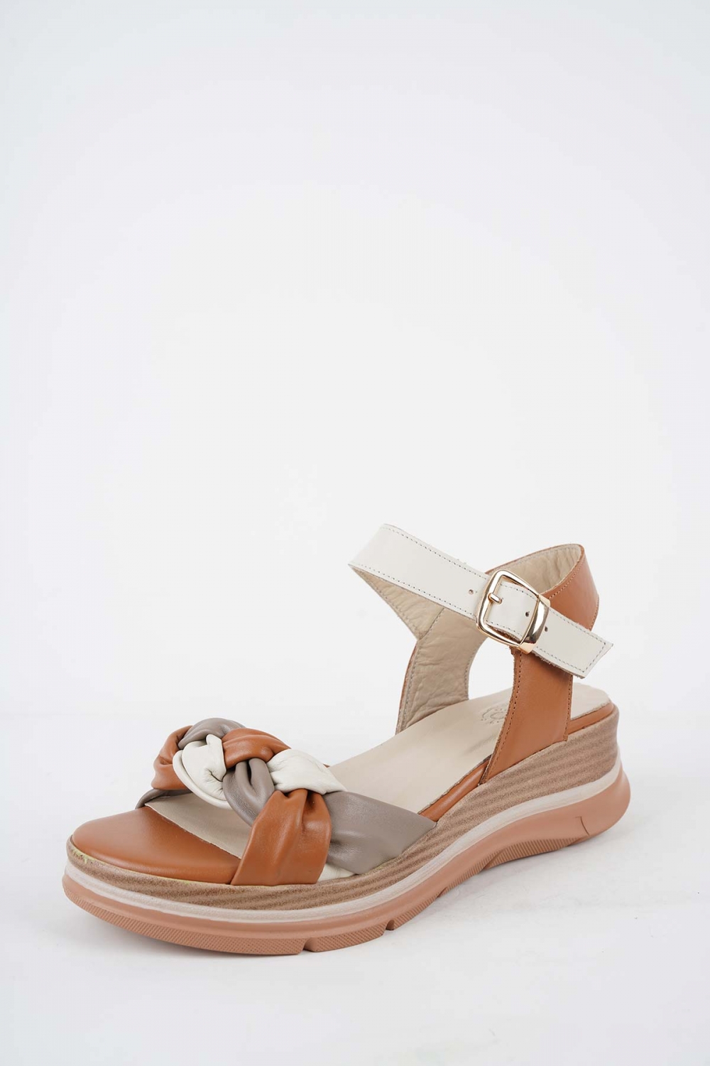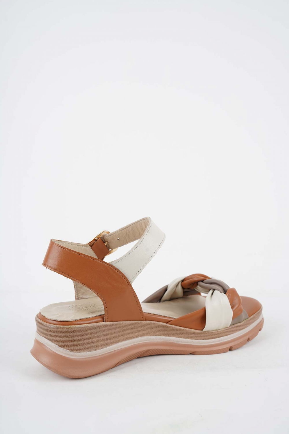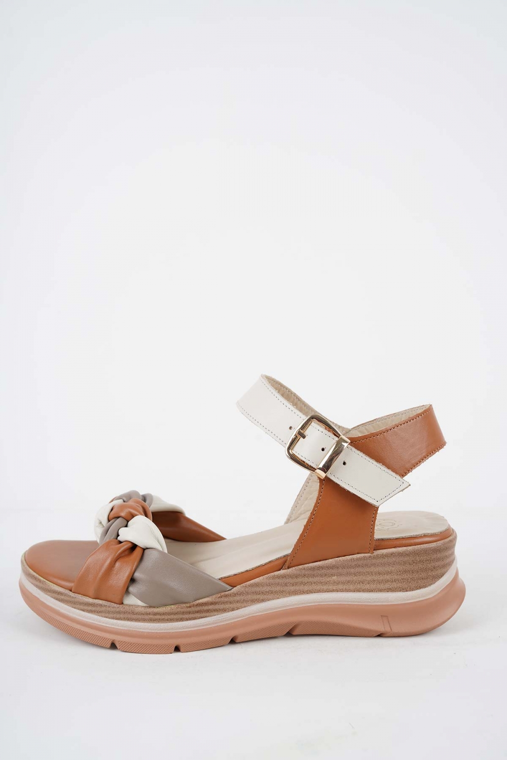 Hakiki Deri Taba-Vizon-Bej Kadın Dolgu Topuk Sandalet 251127505