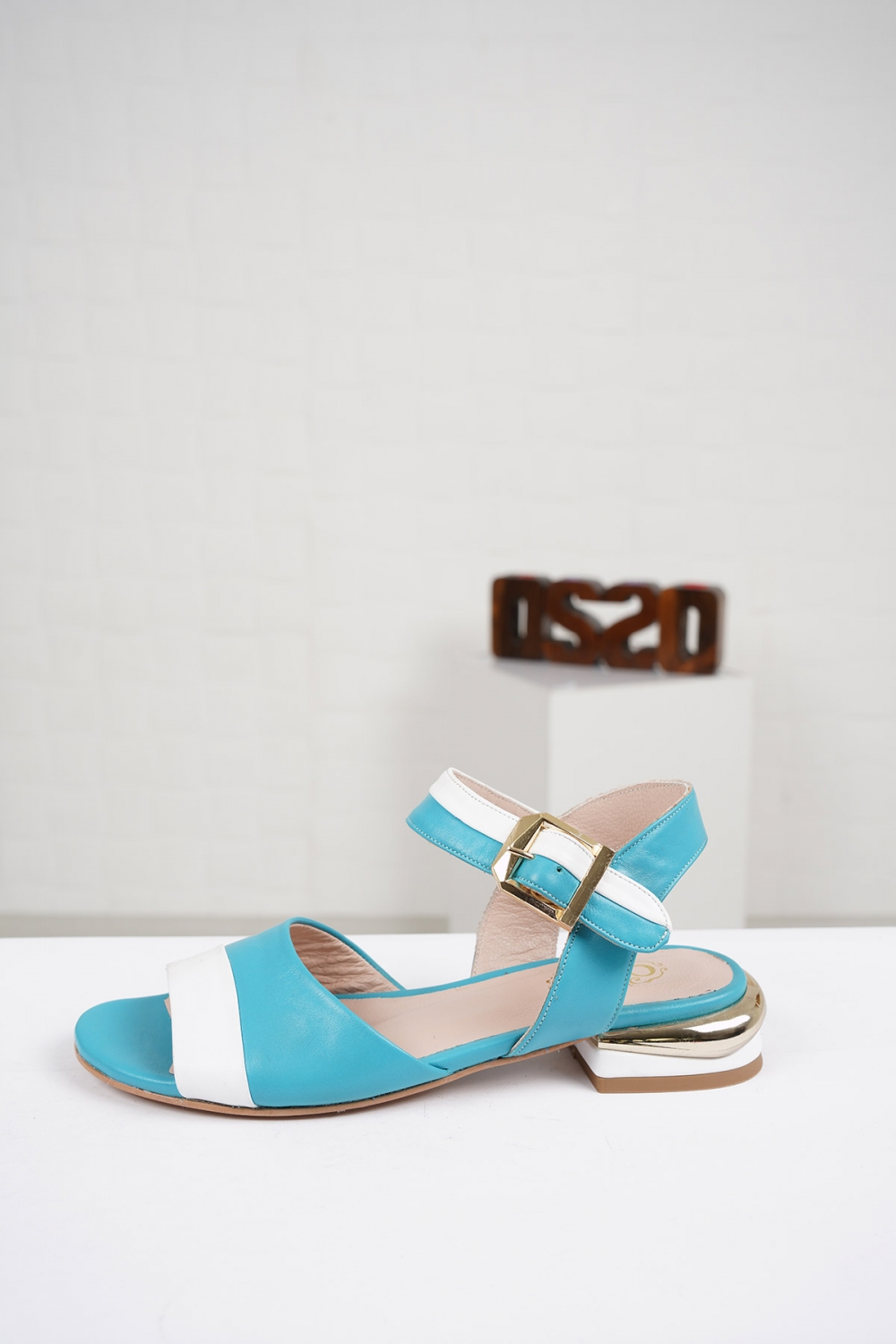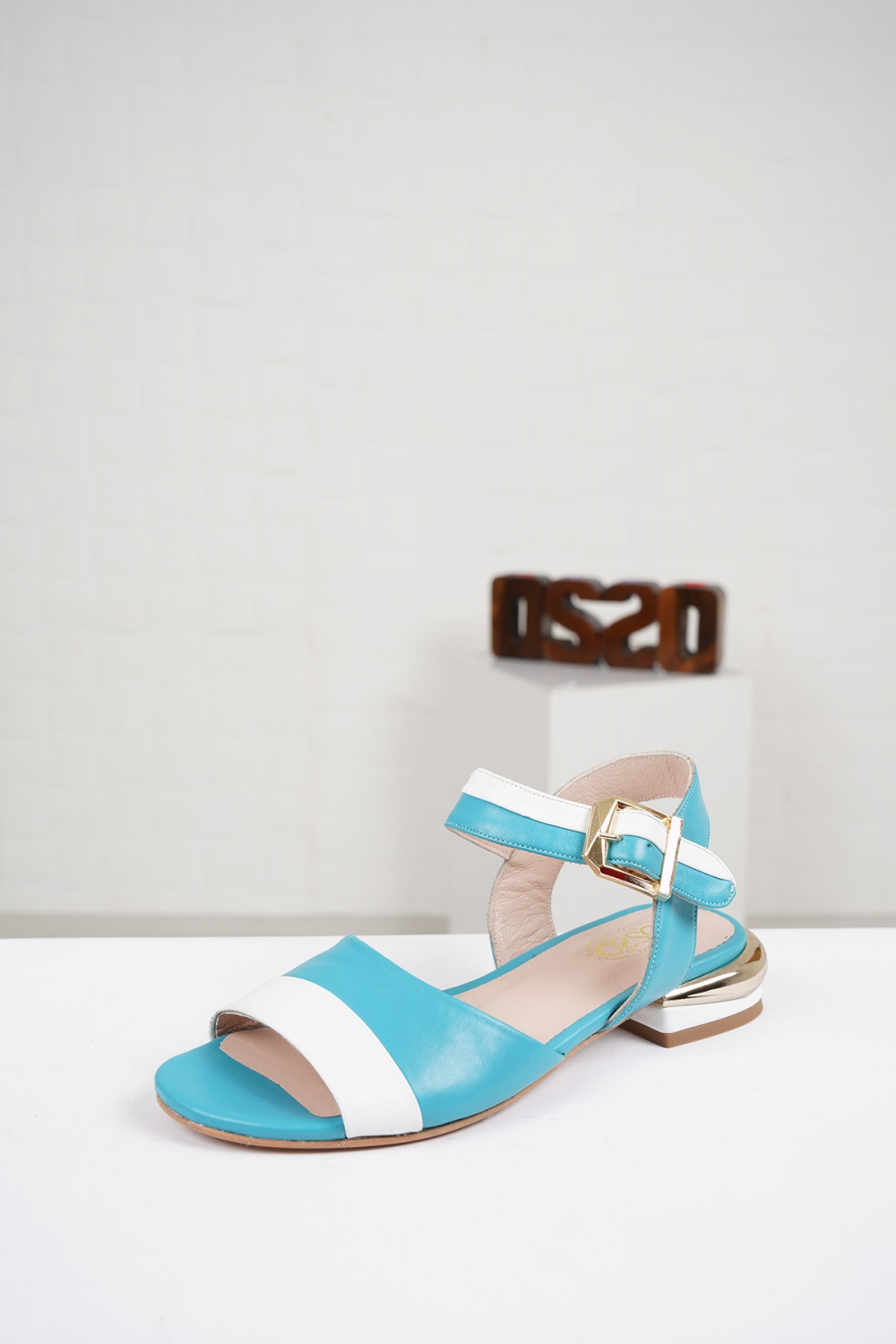 Hakiki Deri Turkuaz-Beyaz Kadın Düz Sandalet 221127517