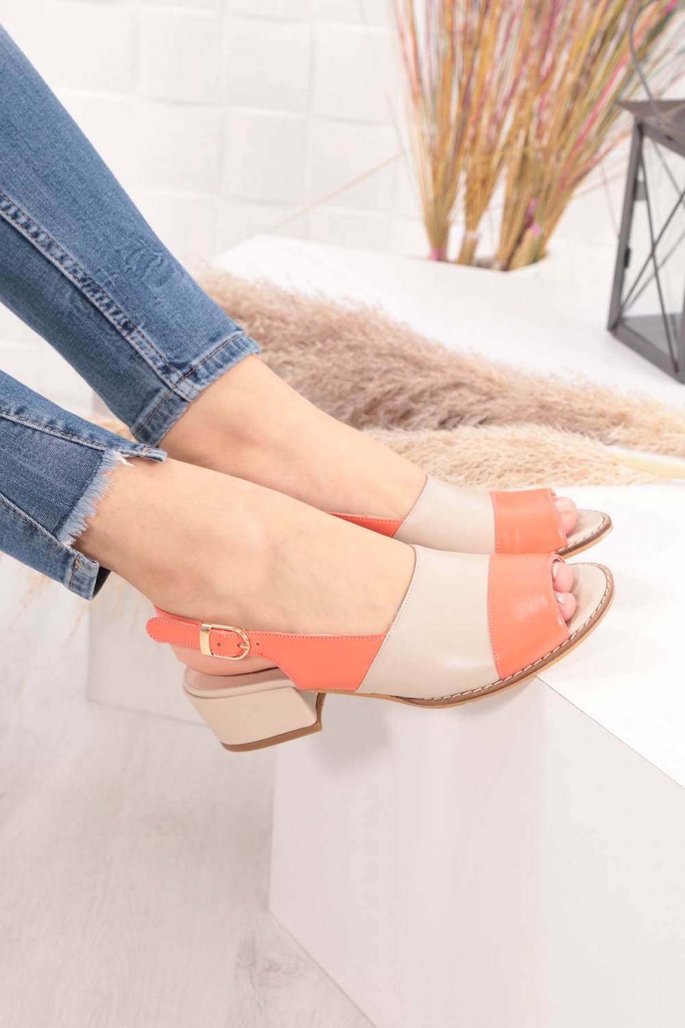 Hakiki Deri Turuncu-Bej Kadın Burun Kapalı Sandalet 211127511