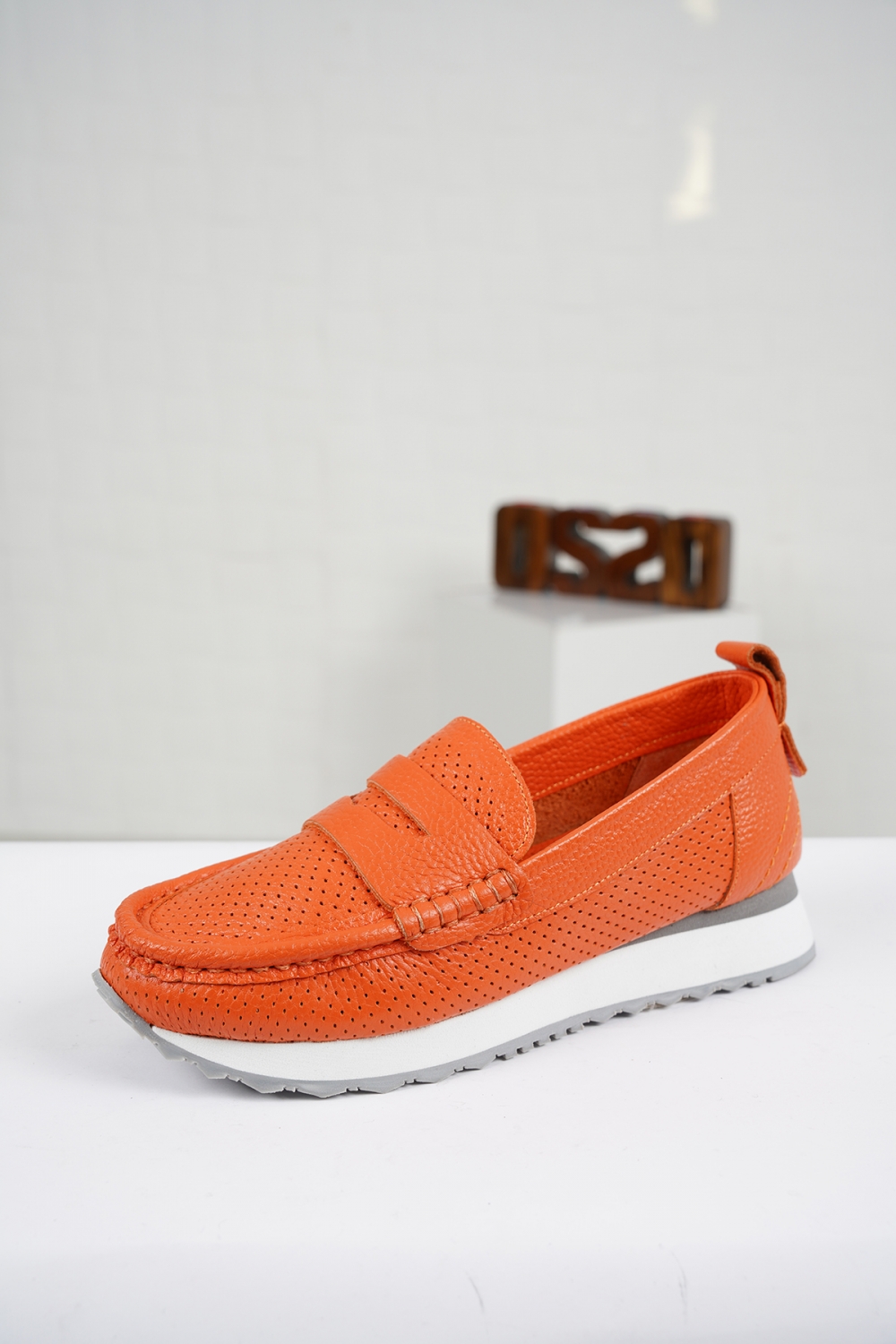 Hakiki Deri Turuncu Floter Kadın Casual Ayakkabı 221126101