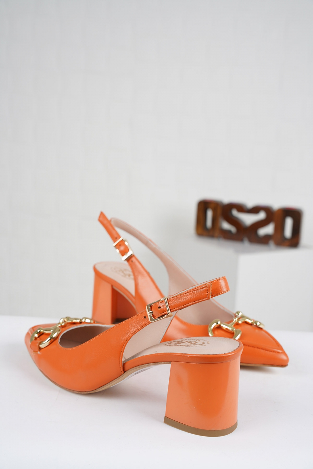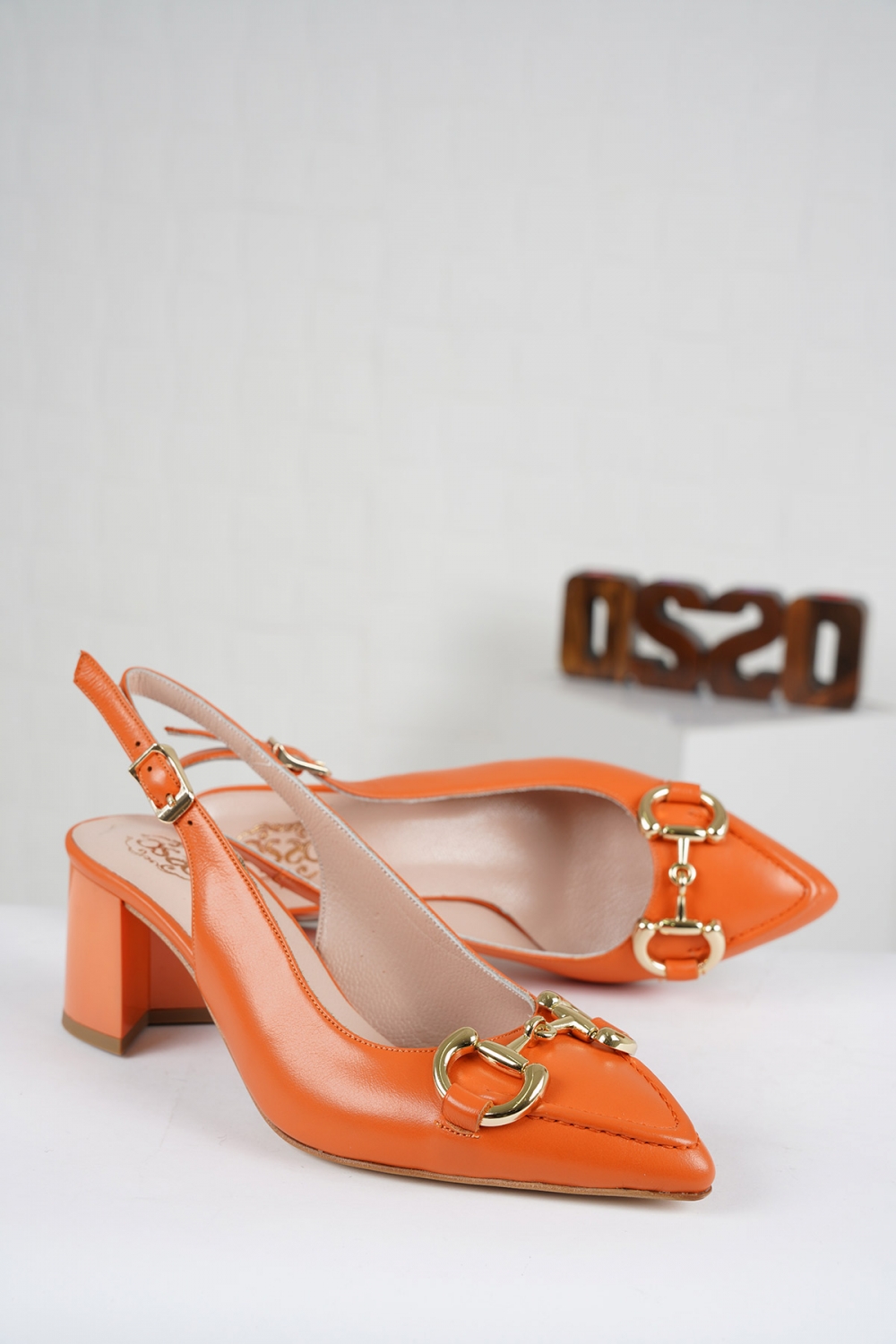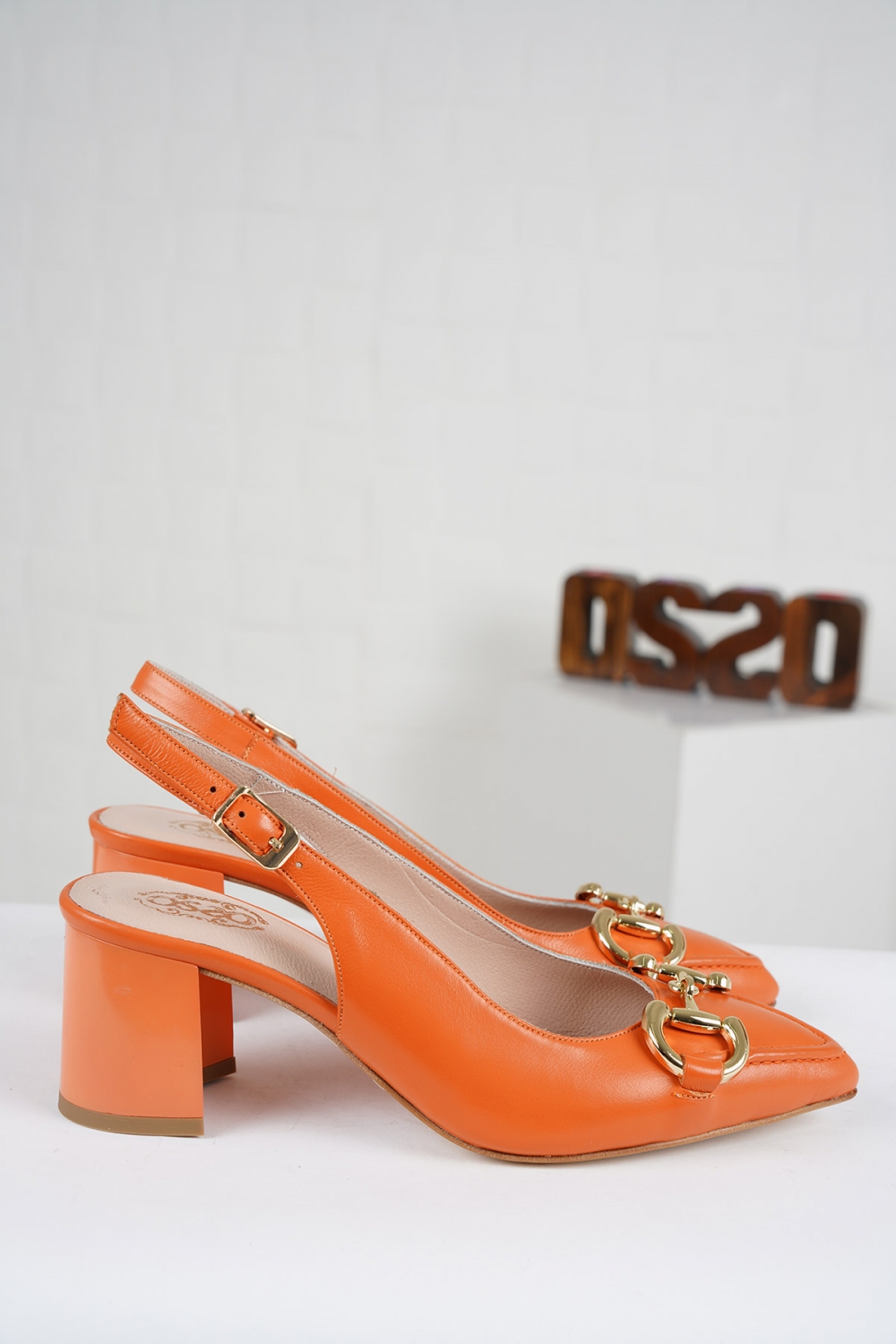 Hakiki Deri Turuncu Kadın Burun Kapalı Sandalet 221127527