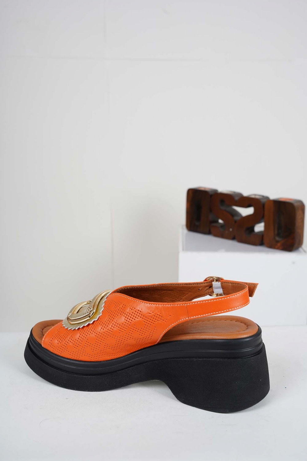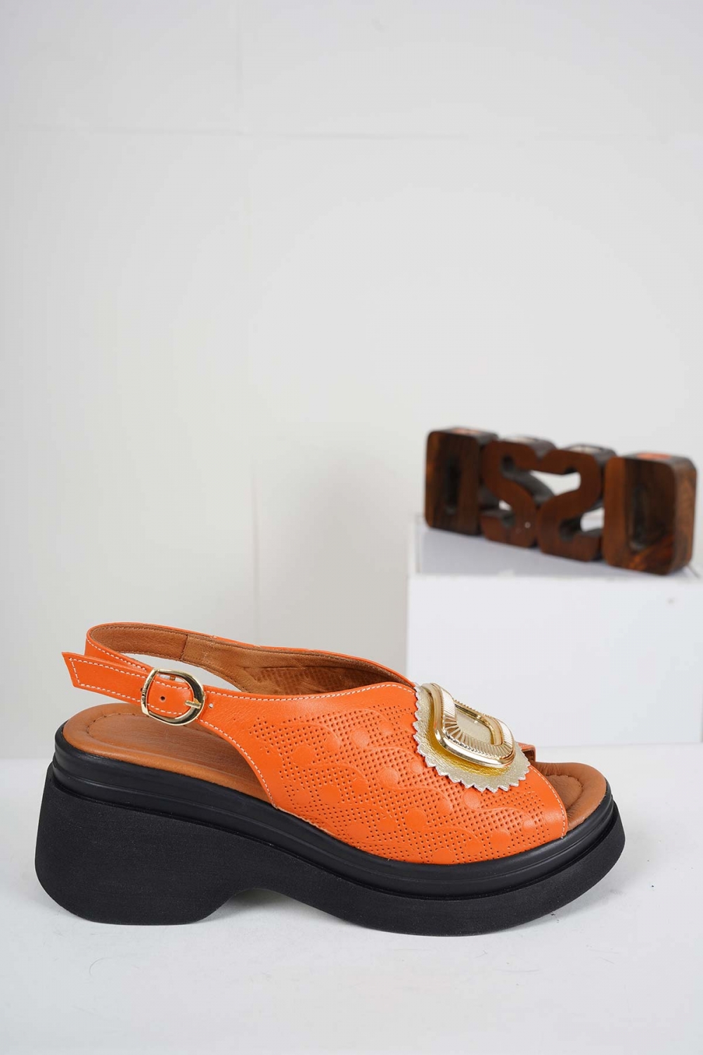 Hakiki Deri Turuncu Kadın Dolgu Topuklu Sandalet 241186501