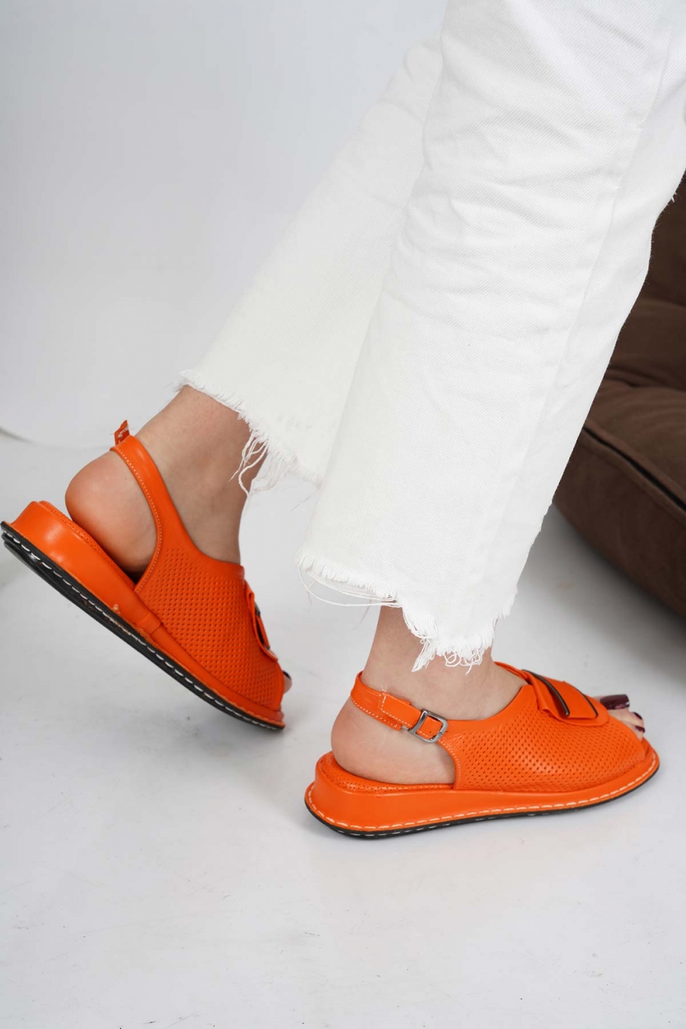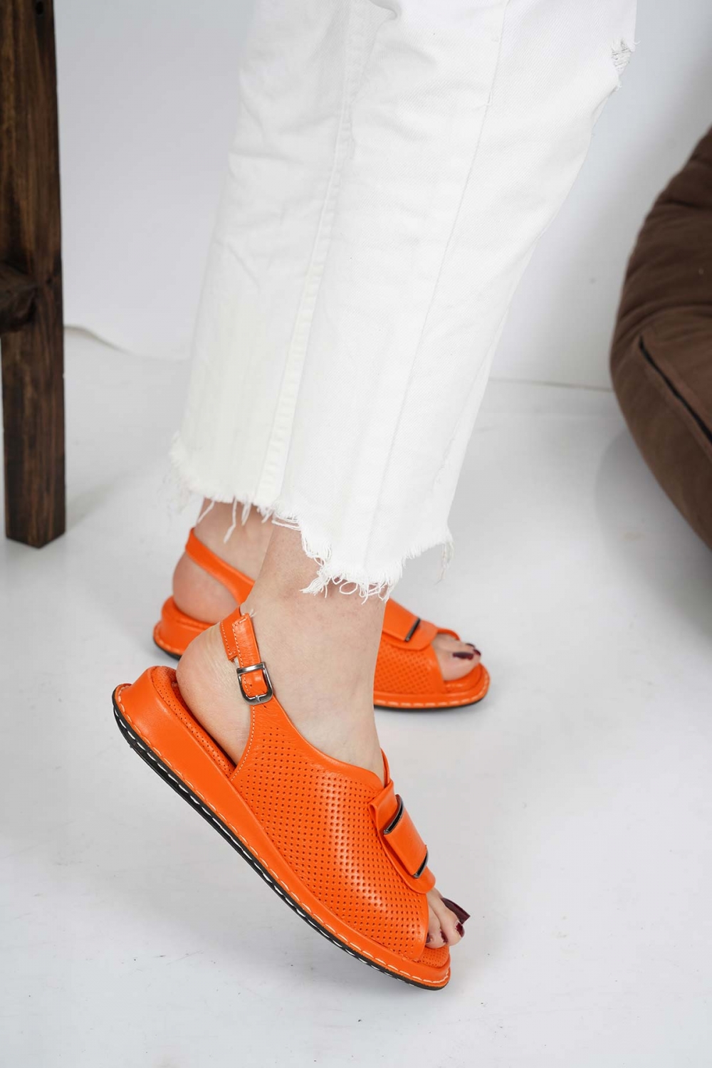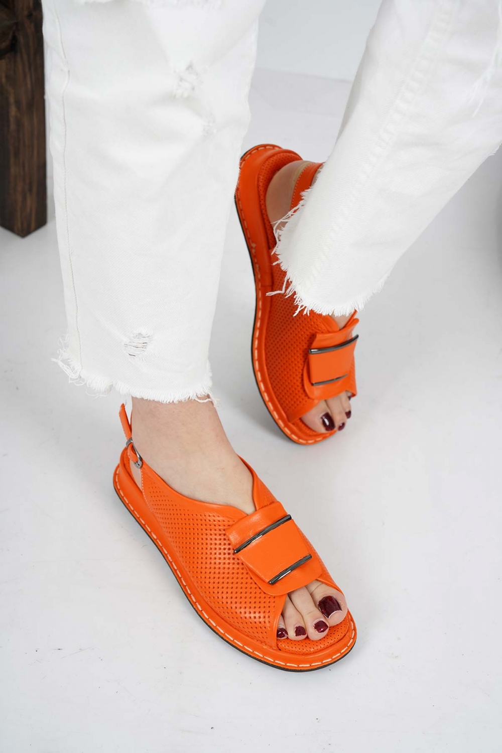 Hakiki Deri Turuncu Kadın Düz Sandalet 231100501