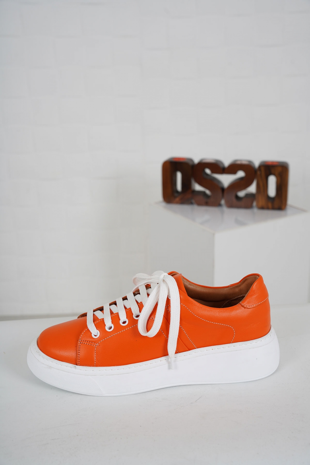 Hakiki Deri Turuncu Kadın Sneaker Ayakkabı 212220102