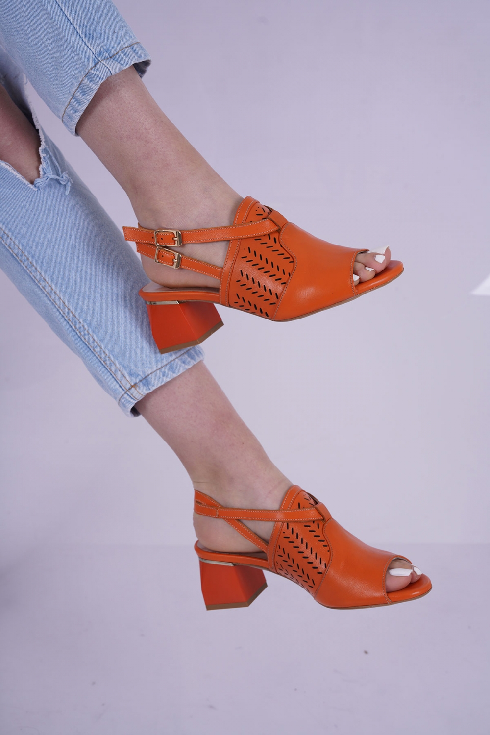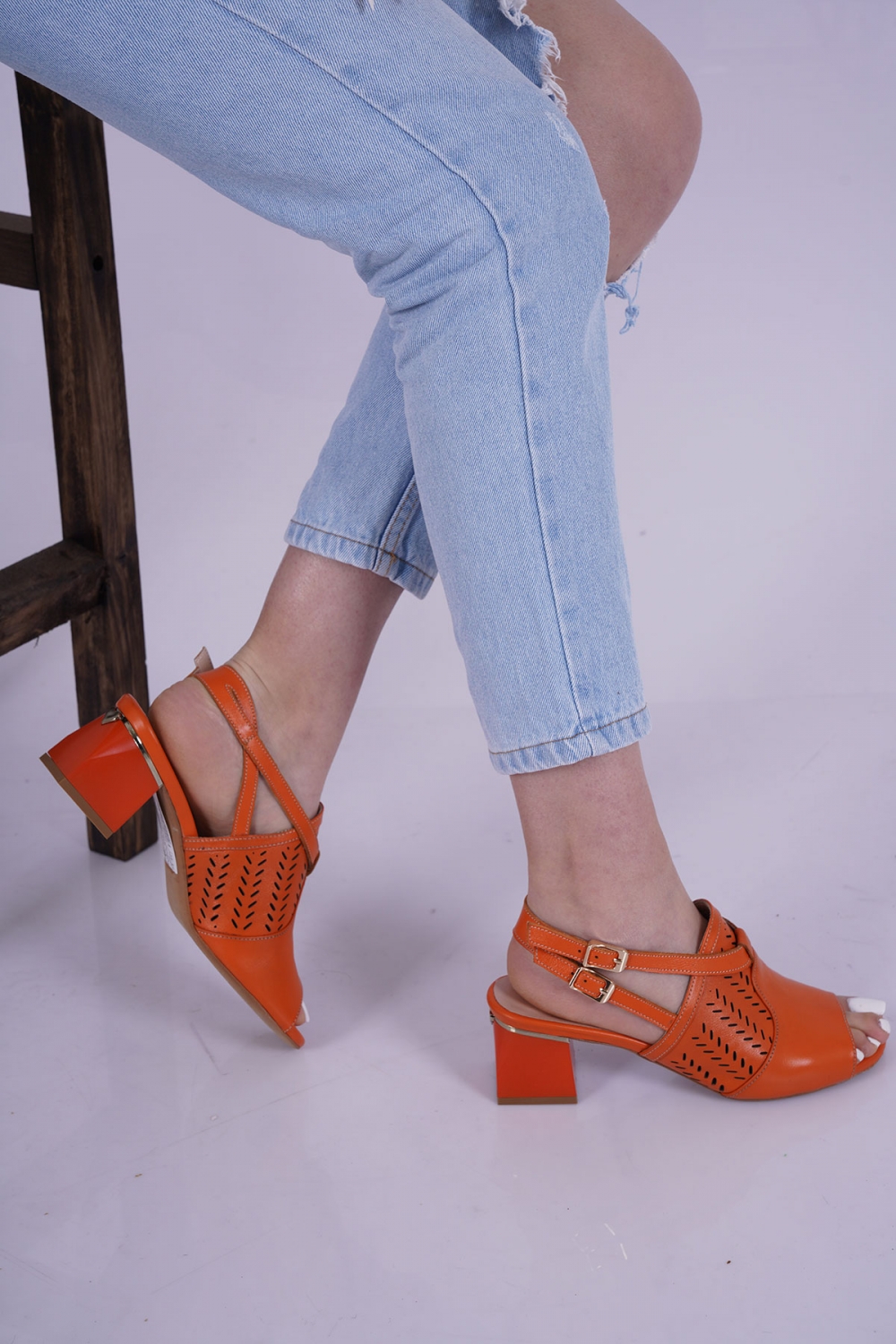 Hakiki Deri Turuncu Kadın Topuklu Sandalet 231127505