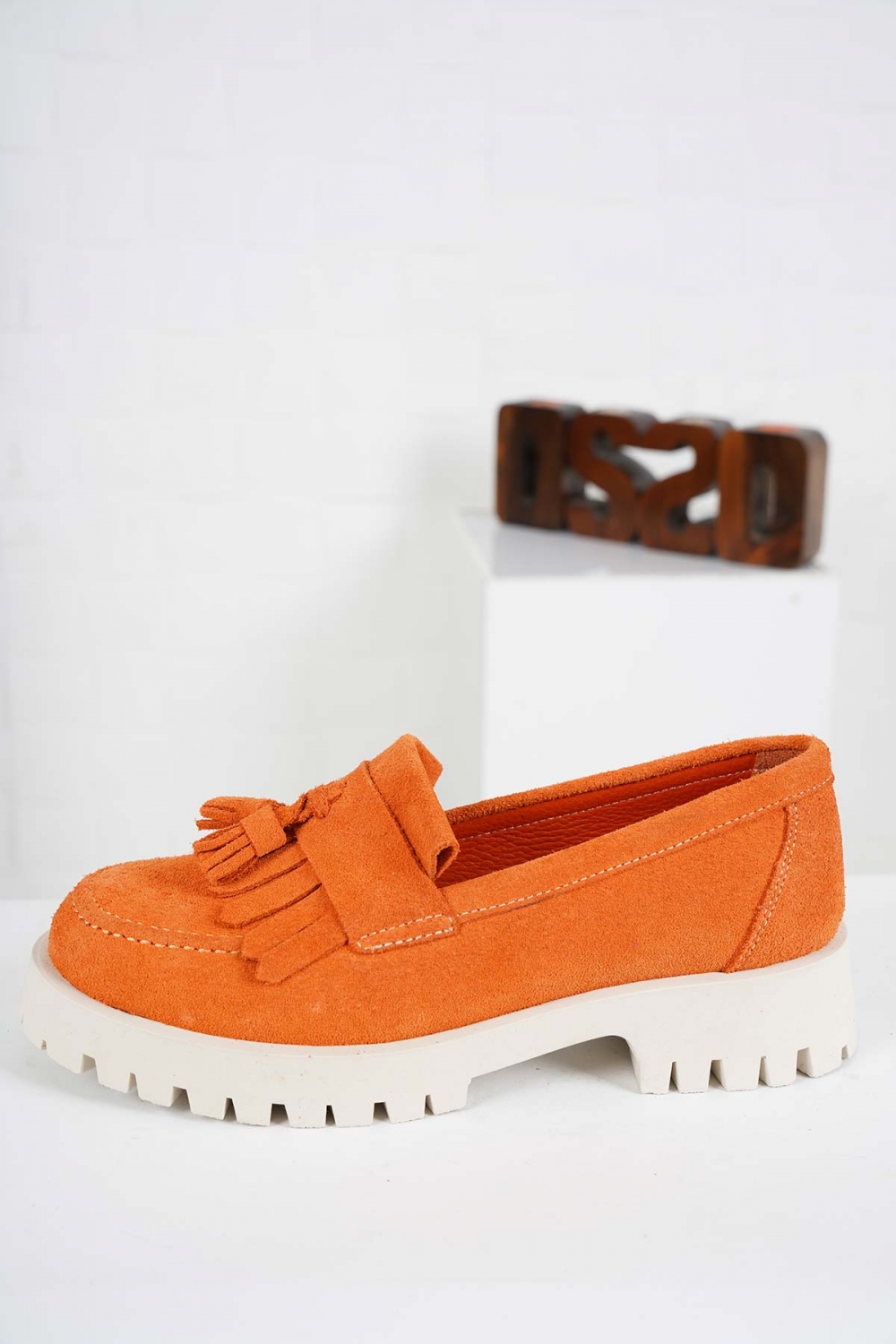 Hakiki Deri Turuncu Süet Kadın Casual Ayakkabı 241108107