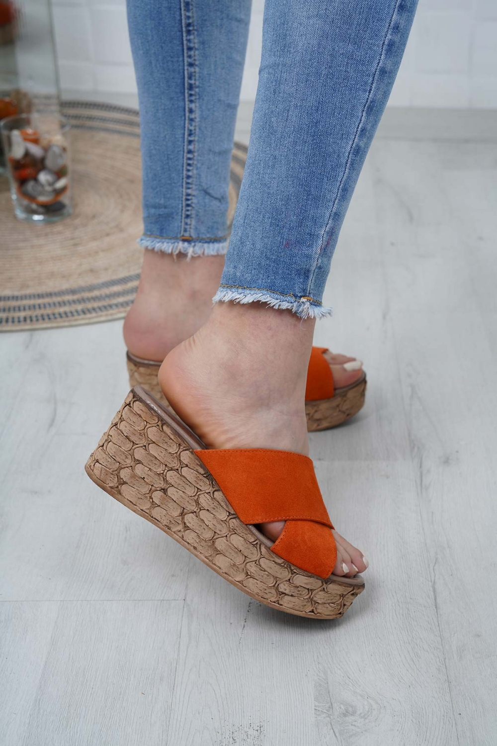 Hakiki Deri Turuncu Süet Kadın Düz Terlik 231110602